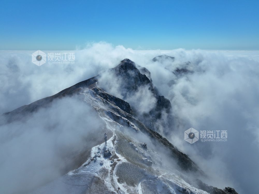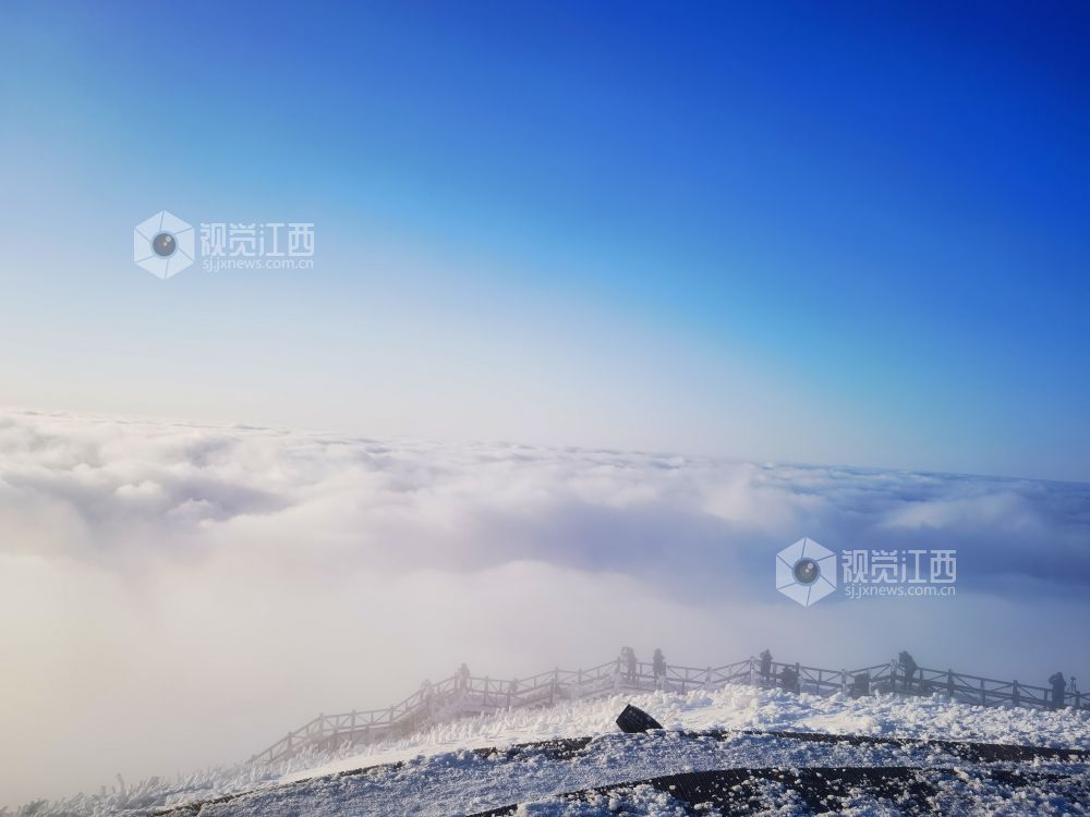 2022年2月23日,江西省萍乡市武功山风景区,山峰披上了银色的盛装,在云雾中若隐若现,吸引了不少市民们纷纷前往赏雪、玩雪,享受童话世界般的美景。