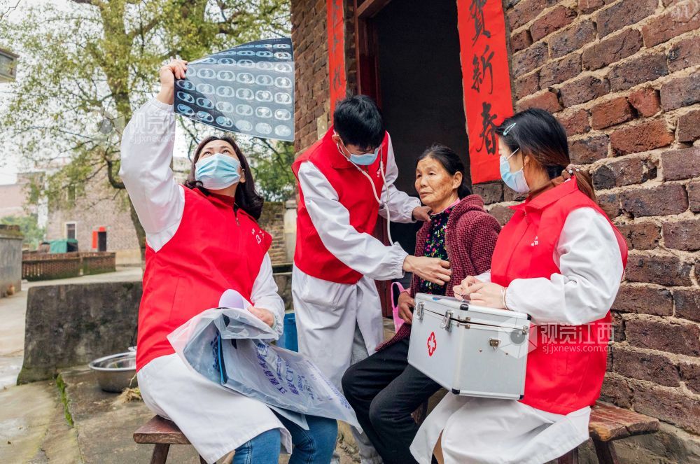 3月1日,江西省永新县文竹镇卫生院的家庭医生签约服务团队,上门为农村低收入人群免费提供基本公共卫生服务和基本诊疗服务。