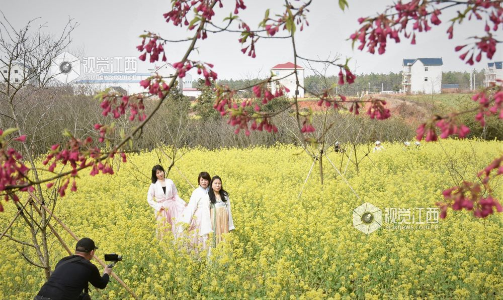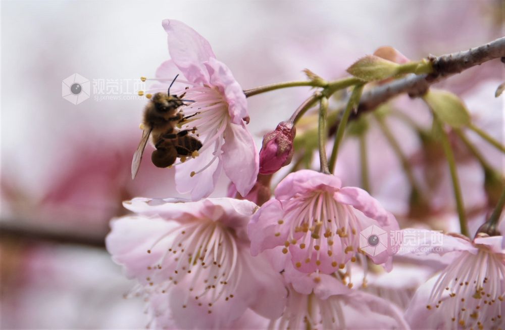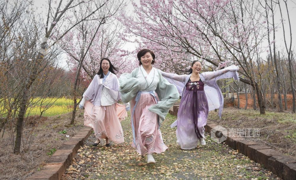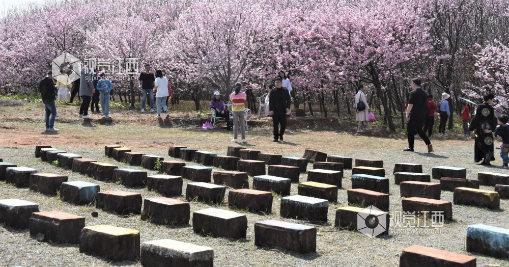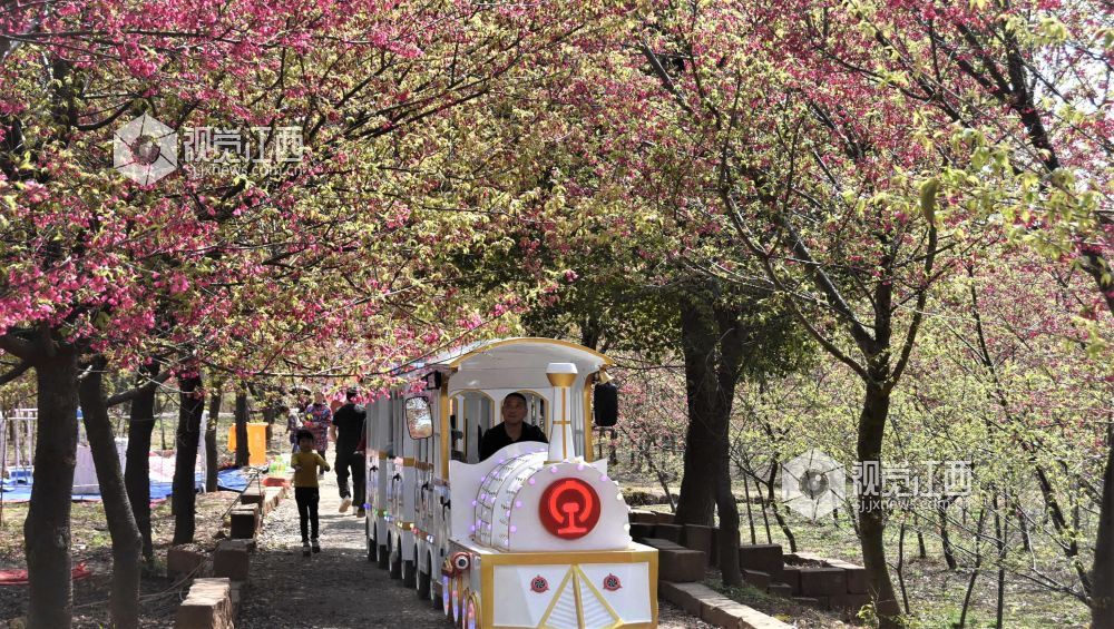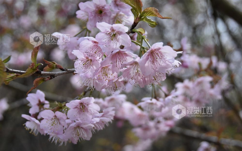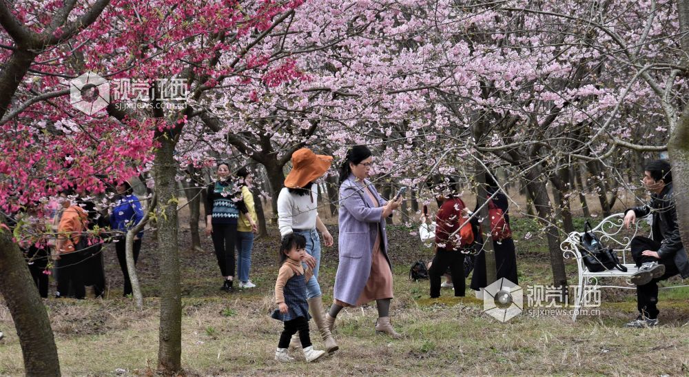 2022年3月5日,江西省鄱阳县饶丰樱花园各种樱花在暖阳下竟先绽放,美景如画。吸引大批游人观景赏花、拍照。