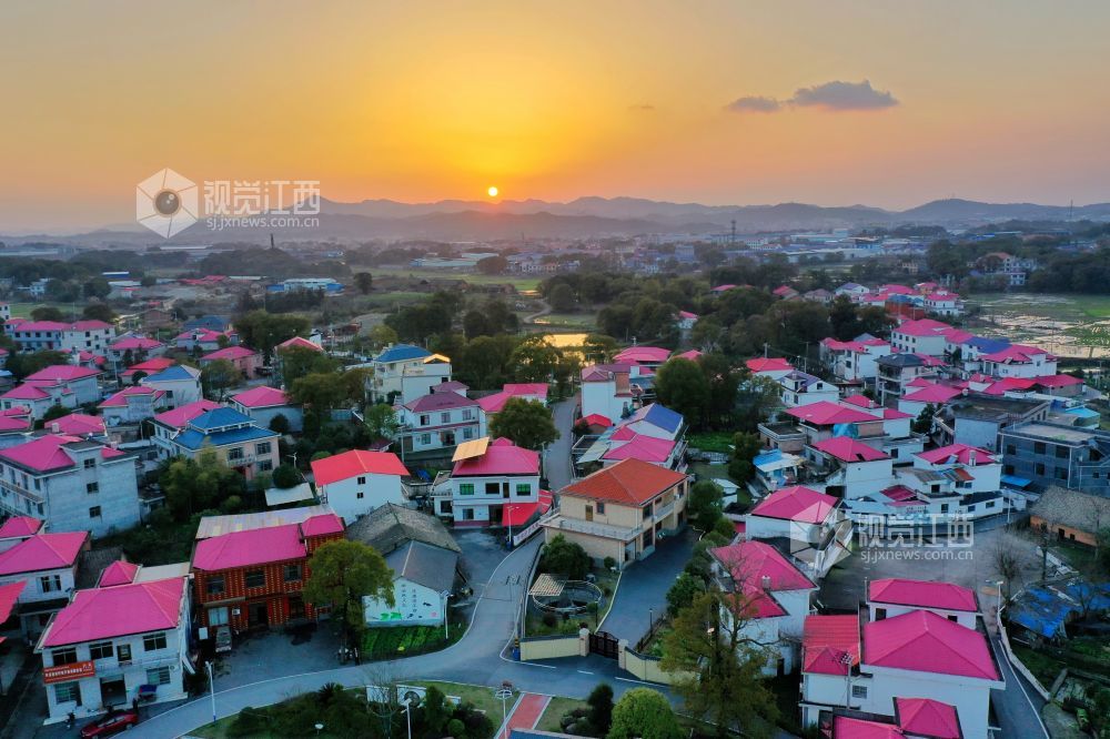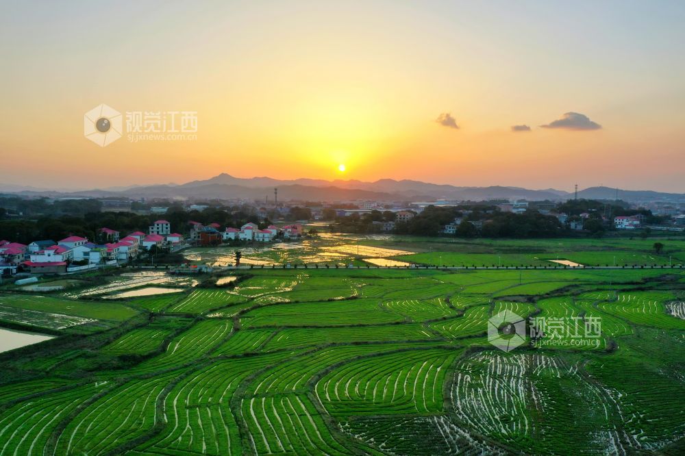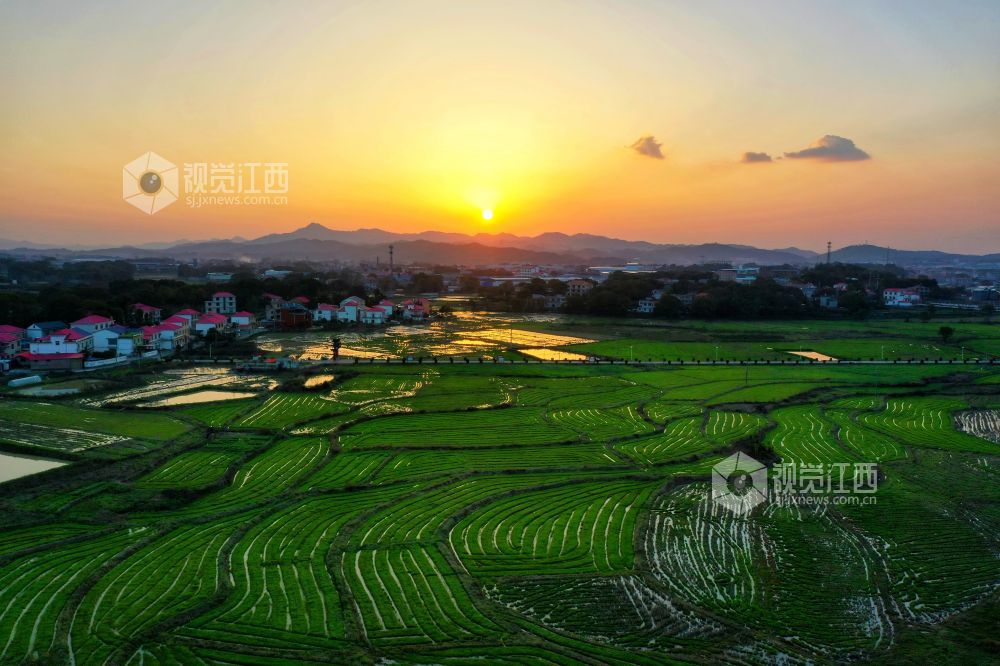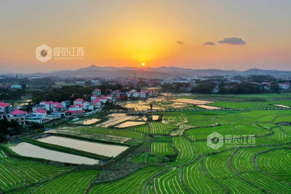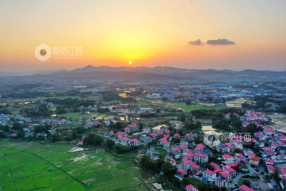 2022年3月7日,江西省萍乡市芦溪县芦溪镇潭田村一带日落夕阳唯美如画。当日傍晚,天空上出现日落夕阳的醉人美景,将春日里的乡村洒下了一层缤纷绚丽的色彩,分外夺目,美不胜收。