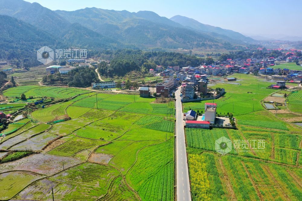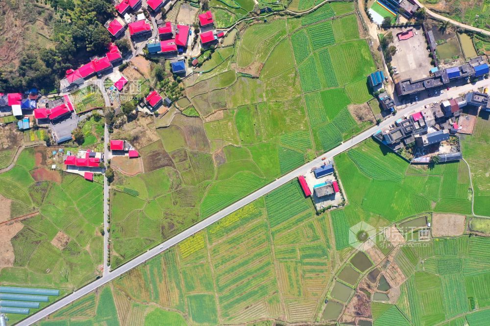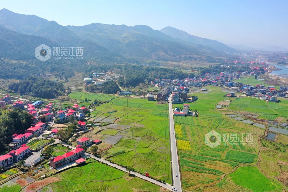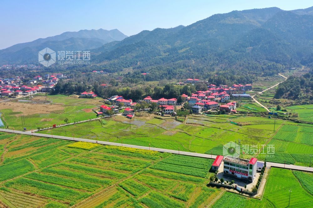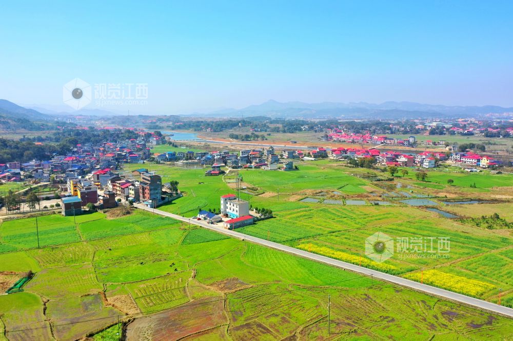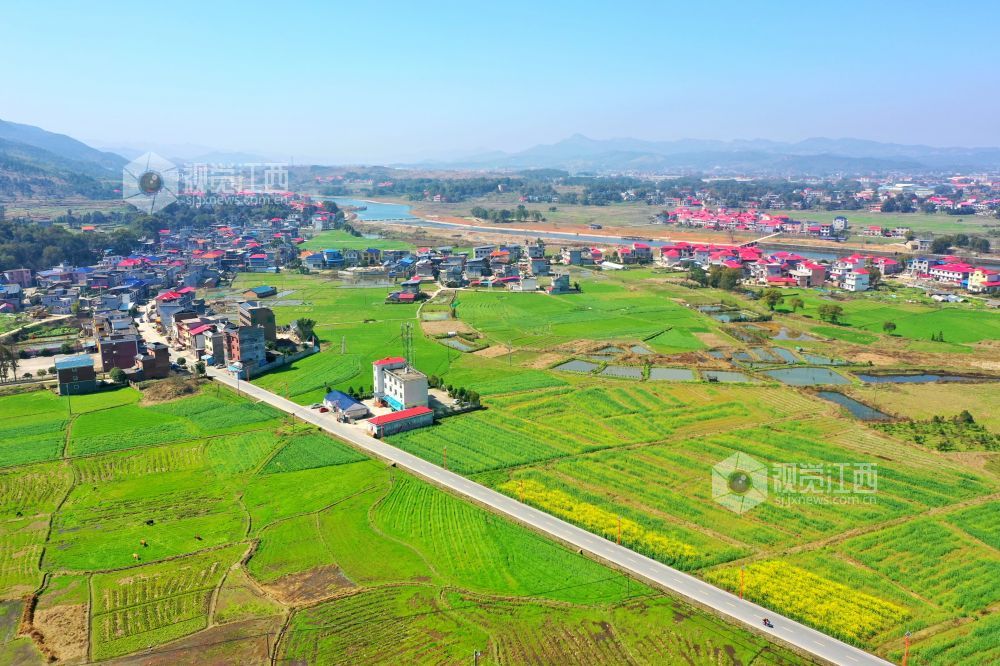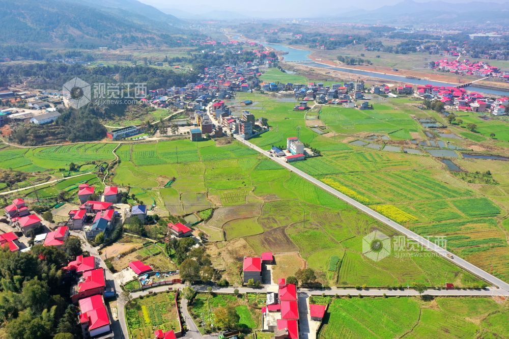 2022年3月8日,无人机航拍江西省萍乡市芦溪县芦溪镇山下村田园风光,田野在春阳的照耀下,色彩斑斓,与村庄相融成景,呈现一幅幅美丽的乡村画卷。