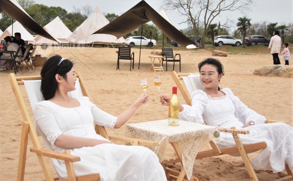 2022年3月19日,春分季节,地处鄱阳湖畔的江西省鄱阳县双港镇鄱湖半岛休闲农庄,来这里休闲观光的游人络绎不绝。