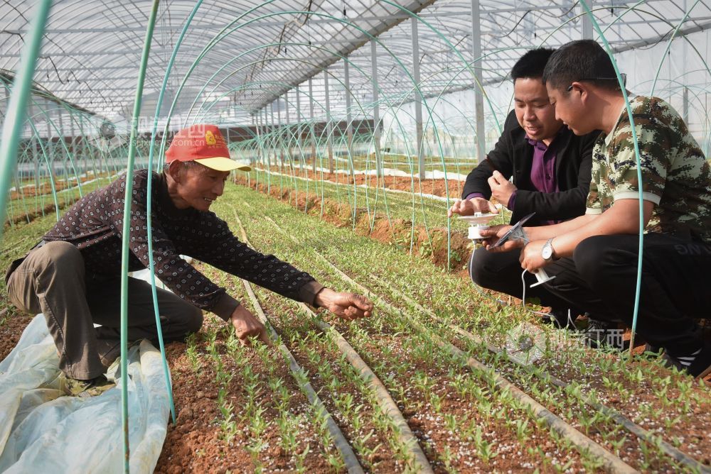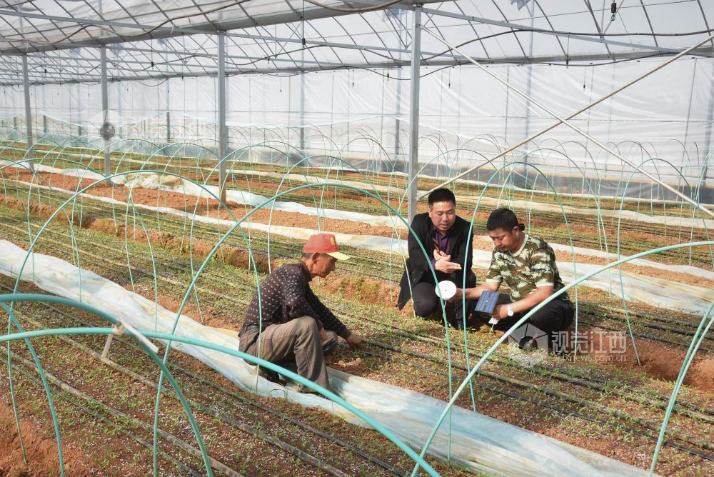 2022年3月29日,江西省鄱阳县乐丰镇万亩蔬菜种植基地廉家核心区科技人员正在大棚采取数据清单。