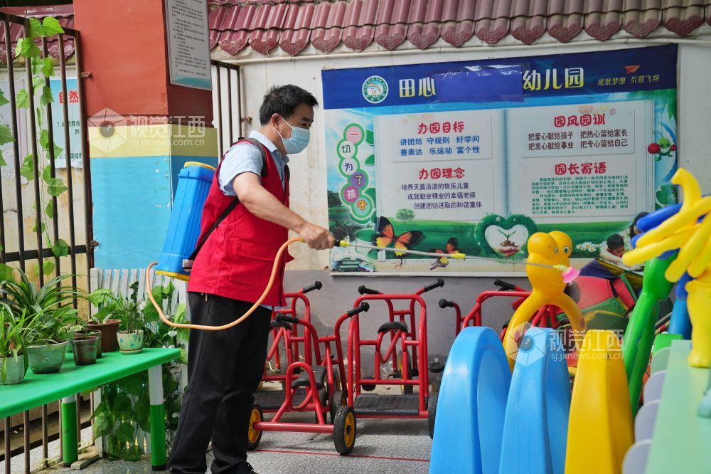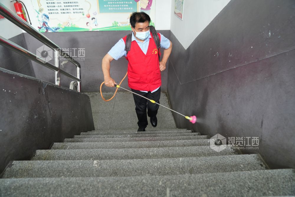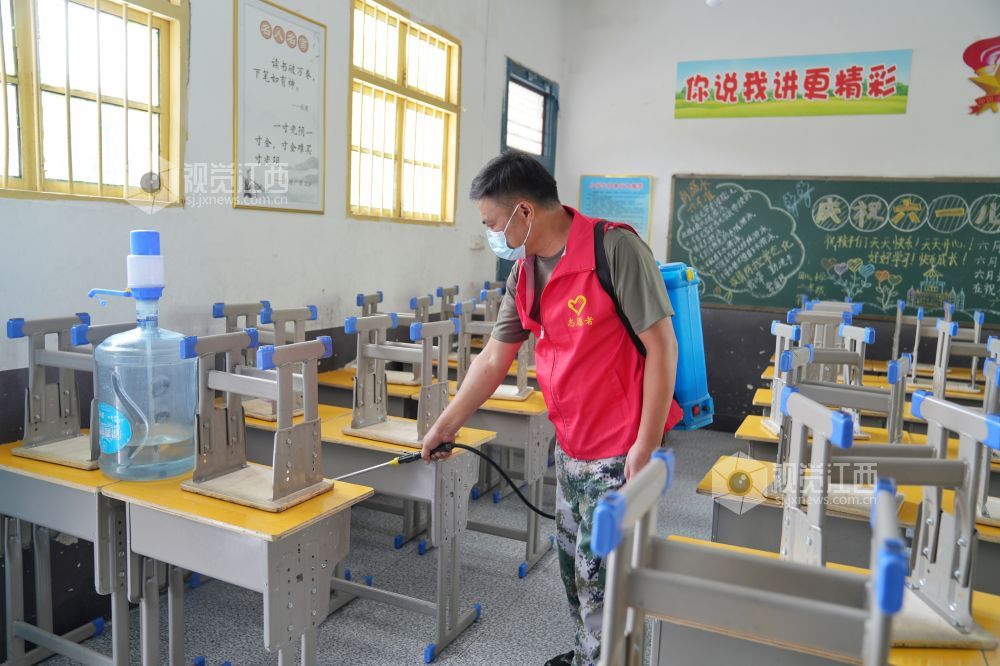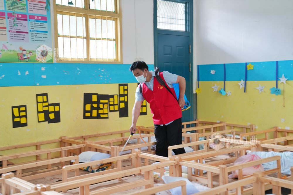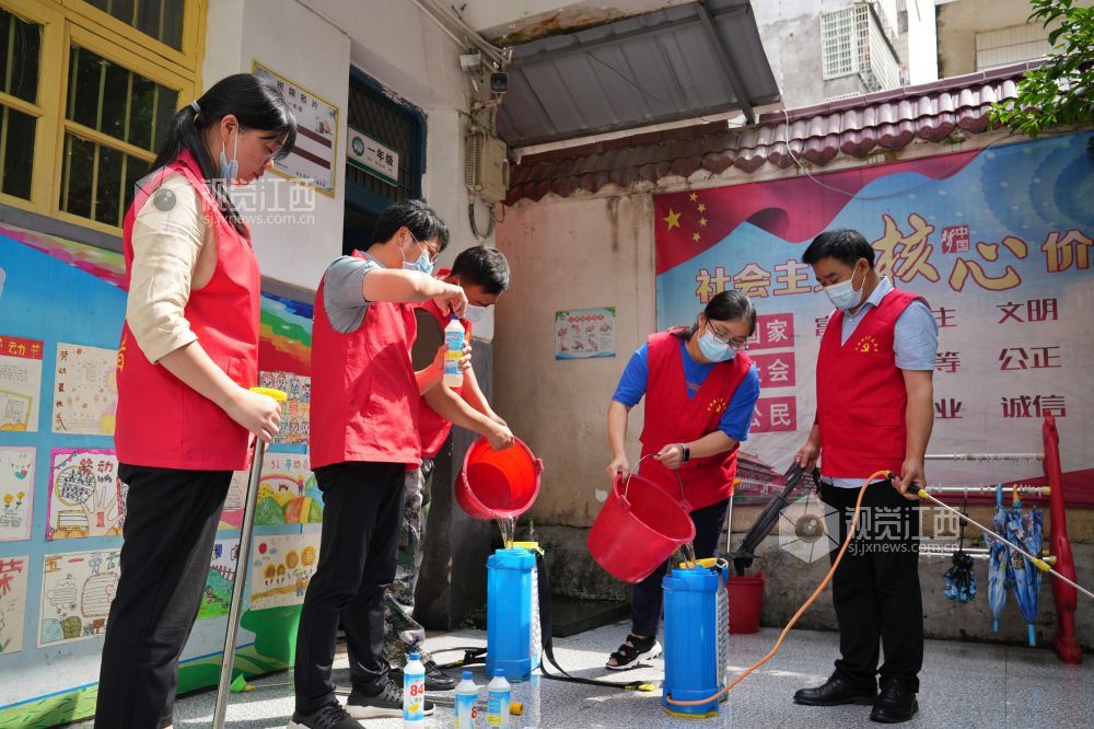 2022年6月6日,暴雨之后,积水退去,为了防止各种有害病菌、蚊、虫的滋生繁殖,江西省萍乡市芦溪县芦溪镇更田村“红管家”党员志愿服务队在田心小学对教学楼、教室、操场等区域进行全面消菌灭毒工作,给学生提供安全健康保障。