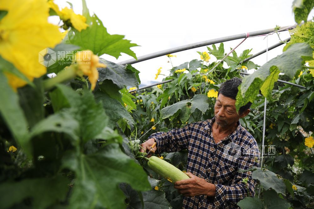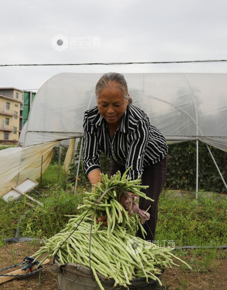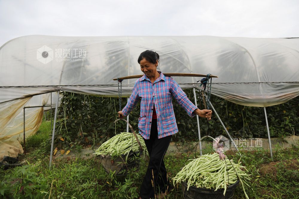 6月11日,莲花县良坊镇新田村蔬果基地,几十个大棚里,村民正忙着采摘豆角、茄子、丝瓜、梨瓜,销往萍乡、长沙,保障市场供应。 基地采取“公司+合作社+农户”的模式经营,有蔬菜大棚106个,种植面积265亩,分批种植辣椒、西红柿、豆角、西瓜、甜瓜等20多个有机蔬菜、有机瓜果品种。基地每年为村集体增收10万元,带动脱贫户长期就业15人,其他农户灵活就业30余人。