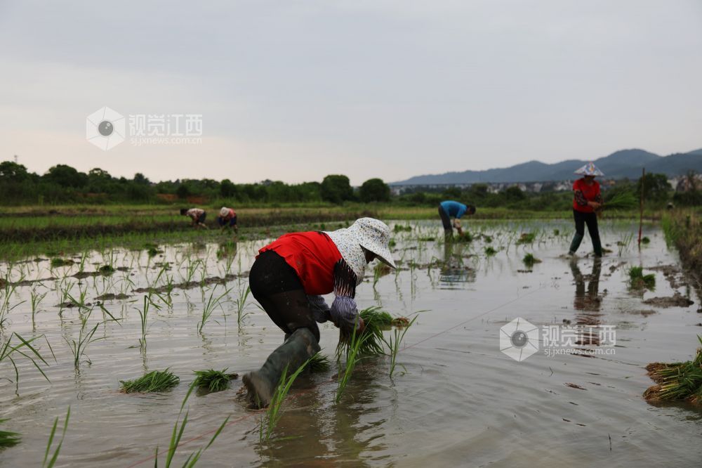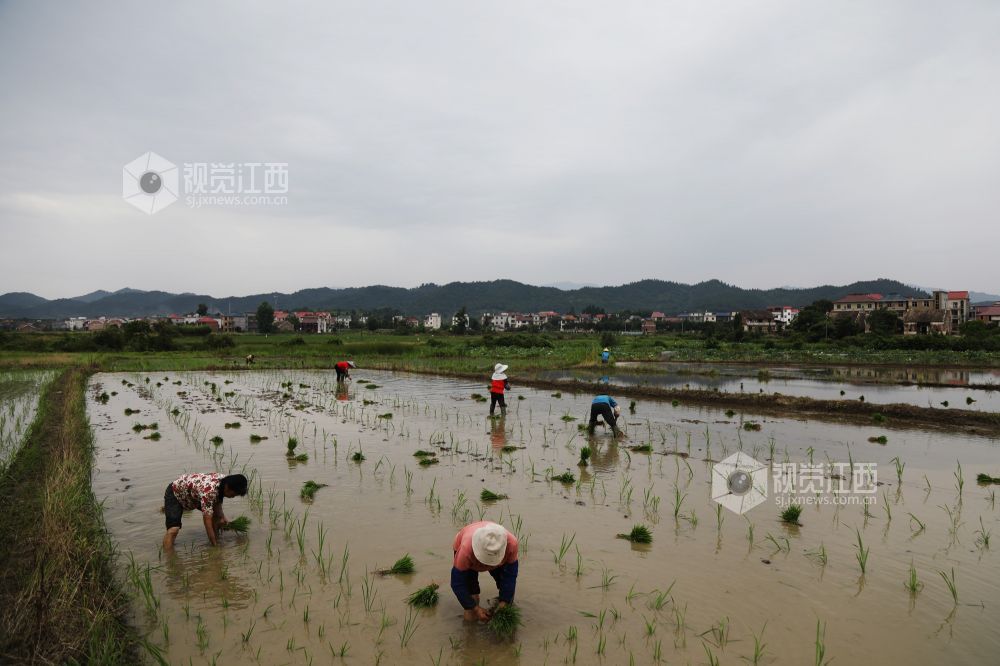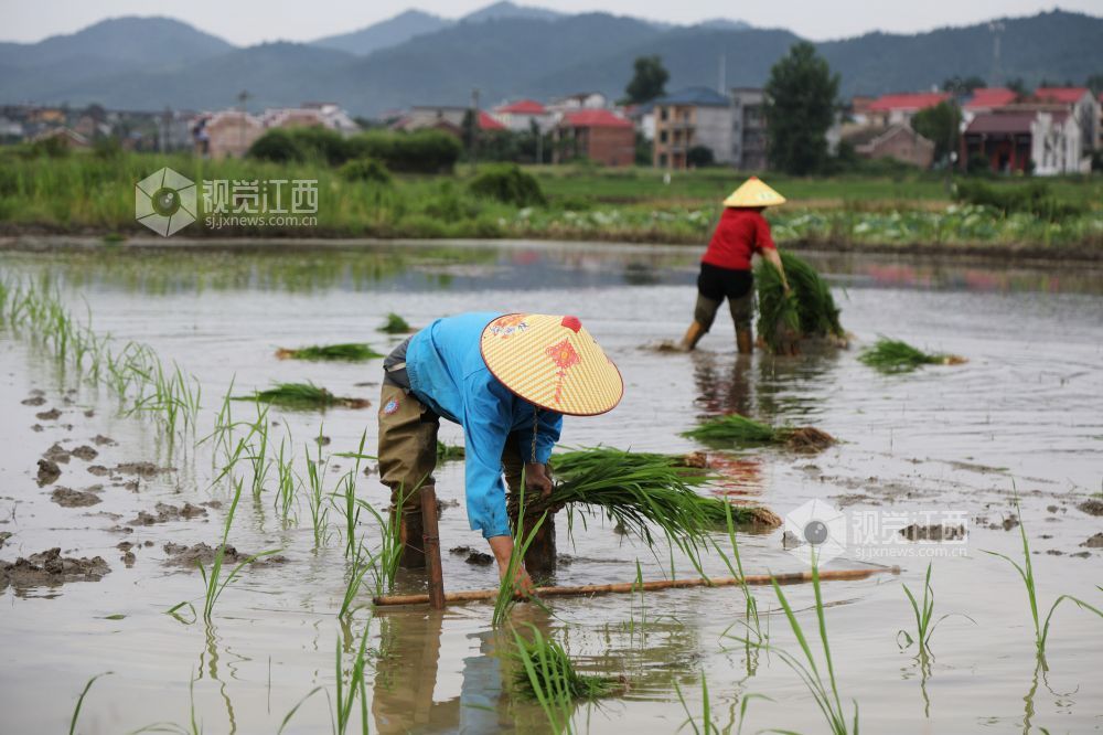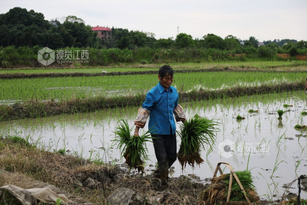 6月10日,江西省莲花县神泉乡模背村杂交水稻制种基地,60余名农民在基地忙个不停。拔苗、挑秧、插秧……,一派热火朝天。 今年初,模背村党支部村委会引进福建专业制种公司,通过合股的方式,投资165万,流转土地465亩,建立了杂交水稻制种基地。眼下正是水稻制种插秧的大好时节,基地抢抓时间,组织村民移栽秧苗,村民每天有150元左右的收入。据初步估算,基地一年付出村民的劳务工资和土地流转收入50多万元。