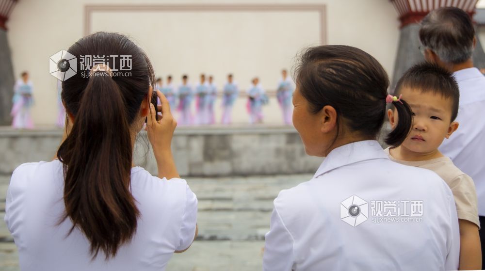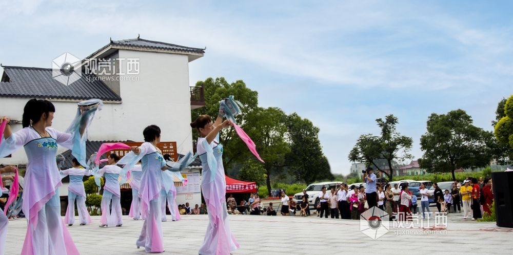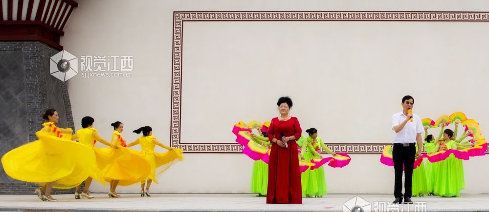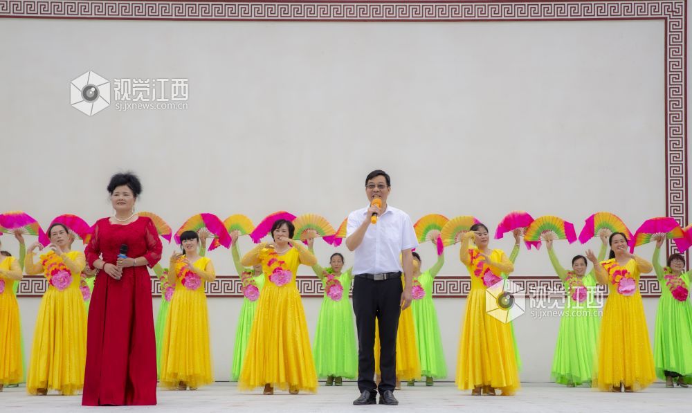 2022年6月16日,在江西省萍乡市芦溪县芦溪镇东阳村文化大舞台,东阳村百姓合唱团的演员正在表演节目,村民们欢声笑语,热闹非凡。
