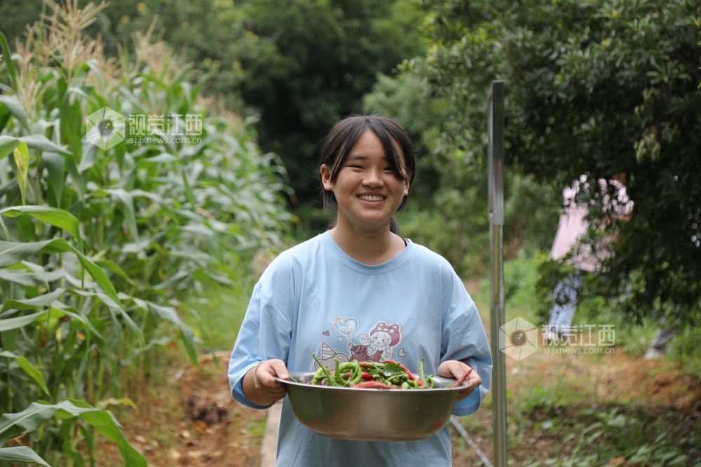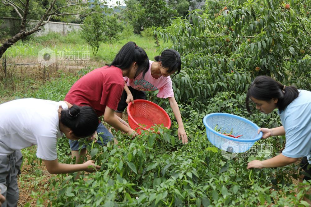 06月28日,江西省莲花县坊楼中学劳动基地内七年级的学生们在老师的带领下,忙着采摘“责任地”里的作物。
