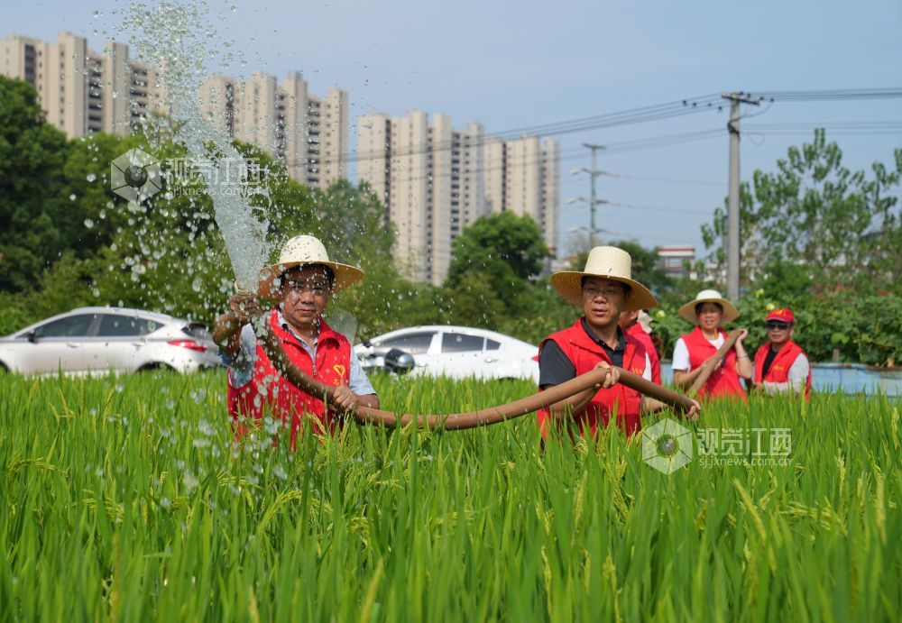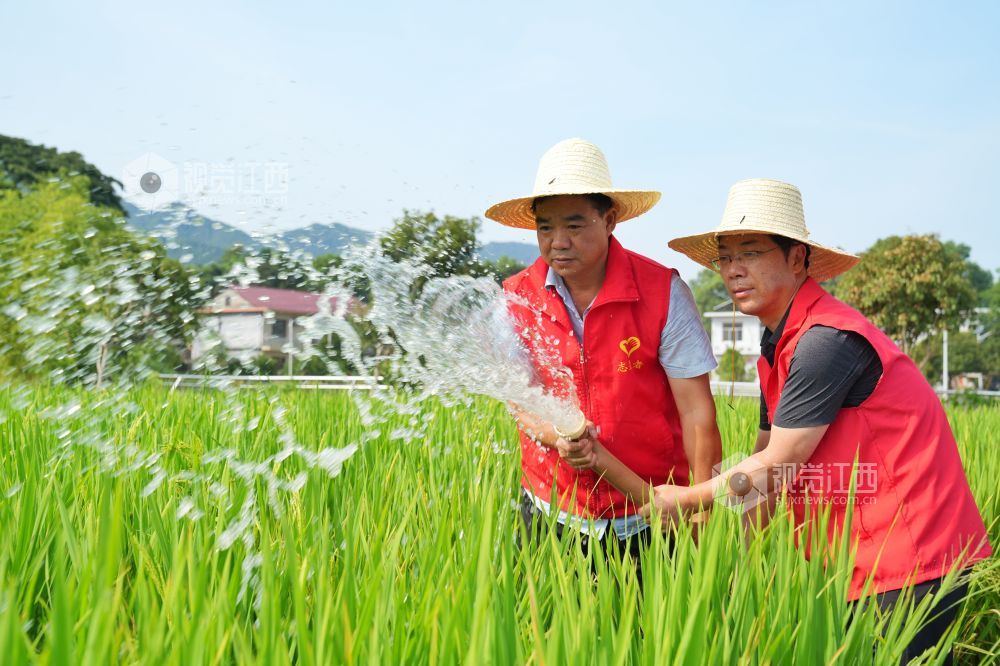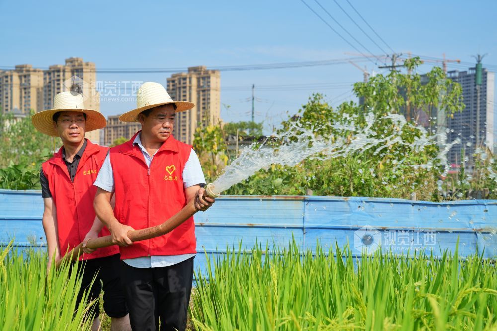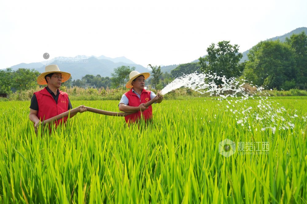 2022年8月16日,江西省萍乡市芦溪县芦溪镇更田村组织党员志愿者在抽水灌溉粮田。连日持续高温干旱,给秋季农业生产和农作物生长造成严重影响,芦溪县芦溪镇积极组织党员志愿者和农技人员冒着高温下村指导农民投入抗旱,抽水浇灌农田缓解旱情,全力以赴抗旱保增收。