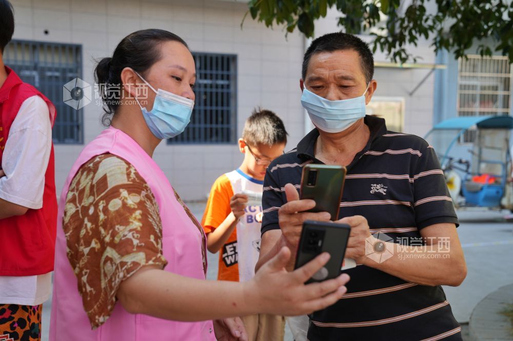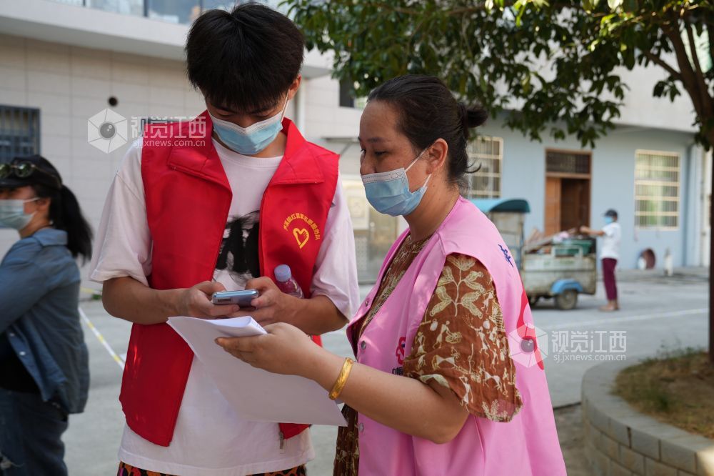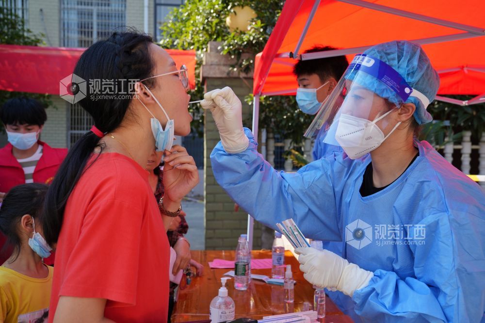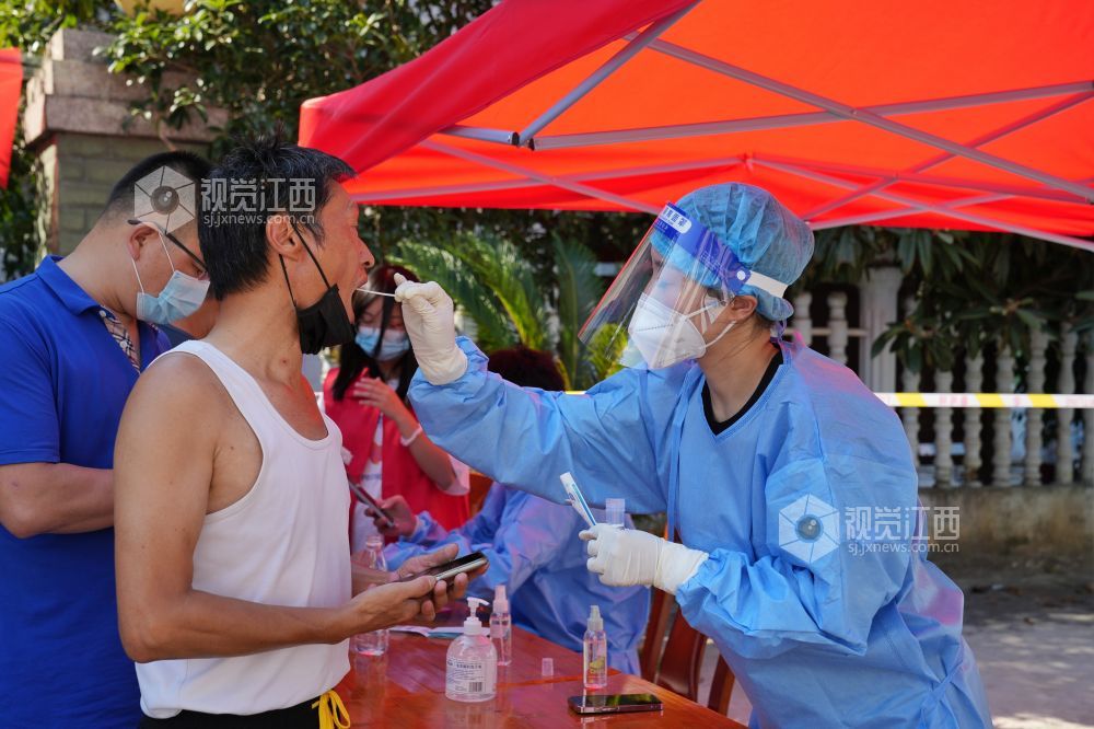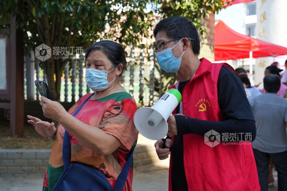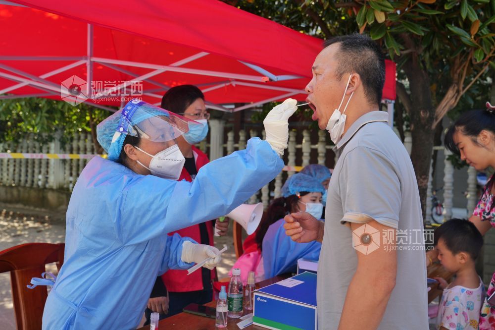2022年8月19日,江西省萍乡市芦溪县芦溪镇温埠管村一处核酸检测点,在党员志愿者的指导下,村民们有序地进行核酸采样。