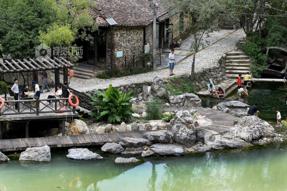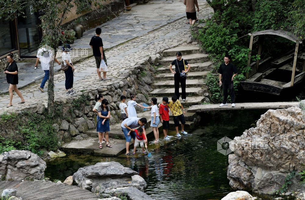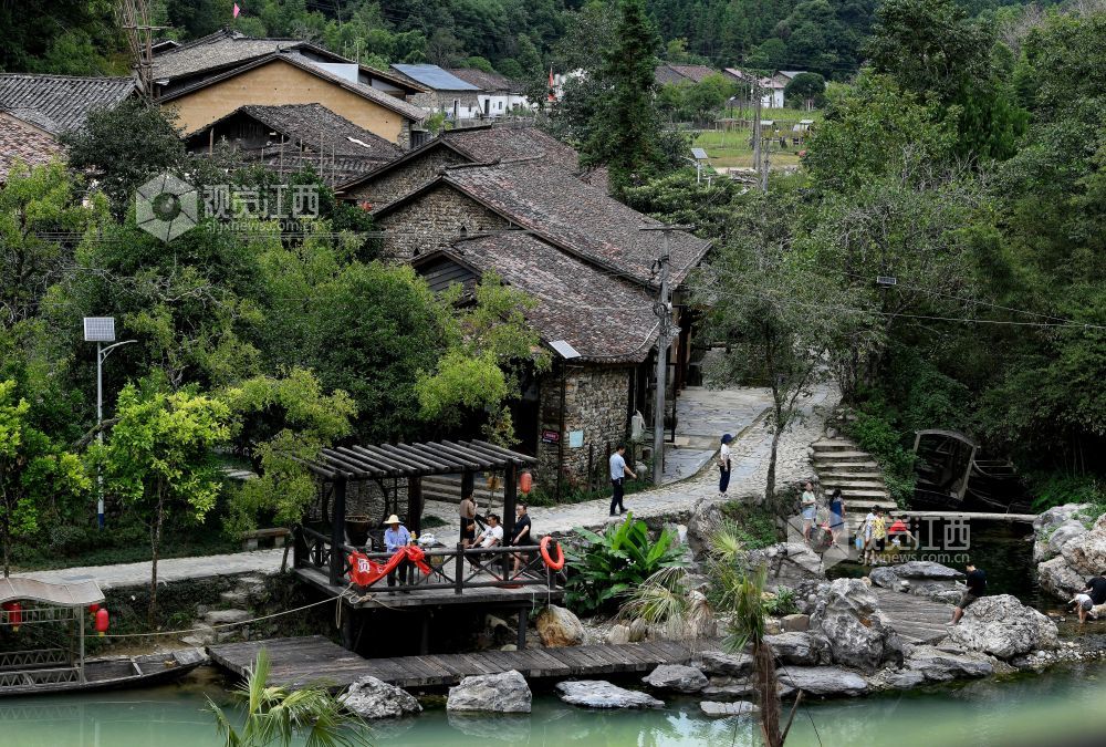 2022年9月4日,游客在被誉为“石头部落”的江西省德兴市龙头山乡陈坊上源头村休闲观光。
