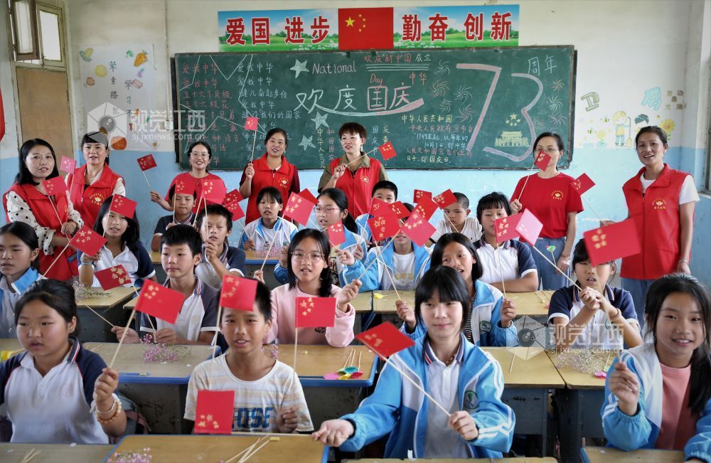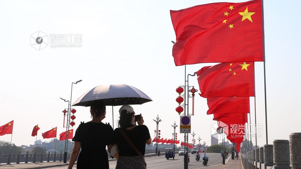 2022年9月30日,国庆前夕,江西省鄱阳县红旗飘扬,处处洋溢着节日的欢乐气氛。