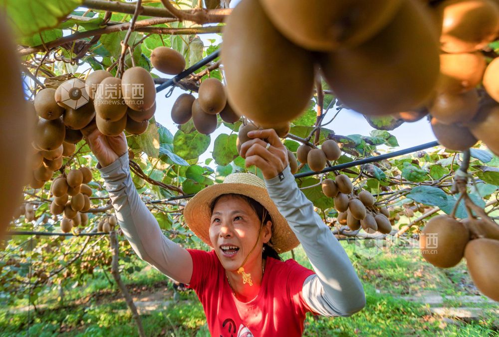 金果飘香季,喜获丰收时。又到了猕猴桃上市的季节,10月2日,在江西省永新县石桥镇合光村的猕猴桃种植基地里,个大味甜的猕猴桃挂满枝头,当地村民忙着采摘、分拣、包装猕猴桃供应市场。