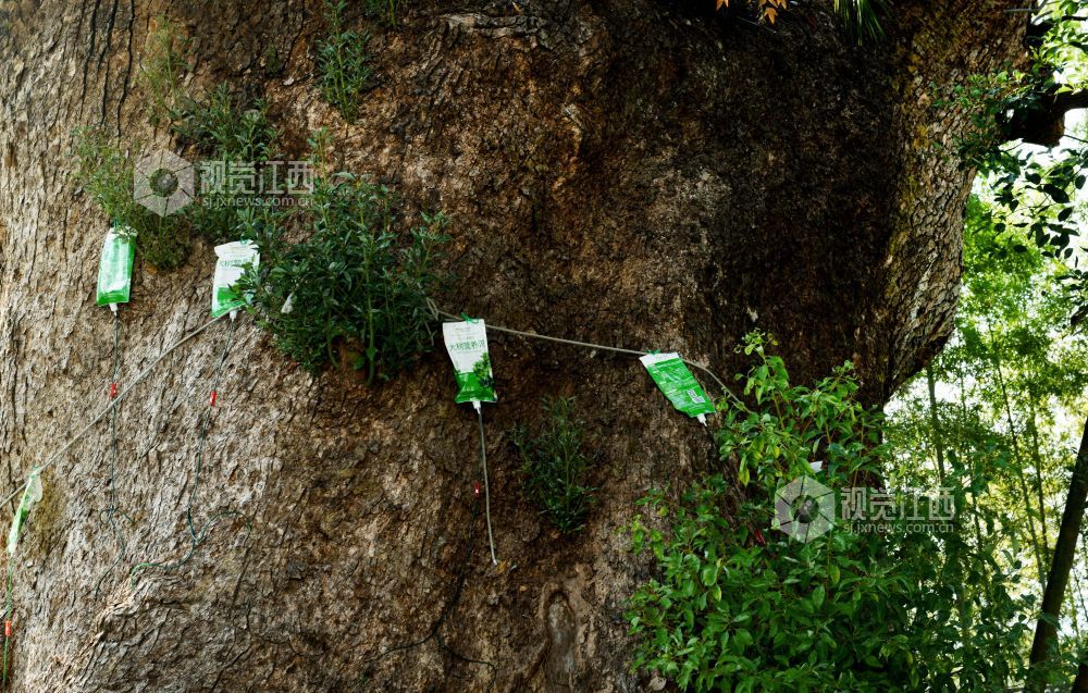 目前,因前几个月长时间干旱,致使这棵千年古樟一根枝干出现枯死现象,当地政府正组织有关专家对这棵古树全力医治后长出新枝,并予以重点保护。