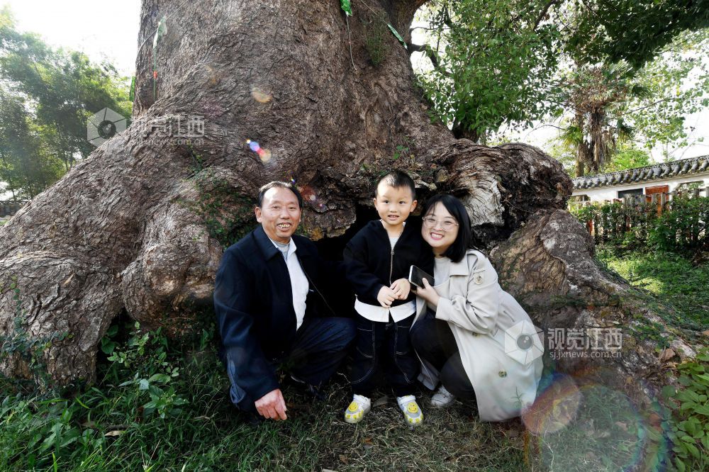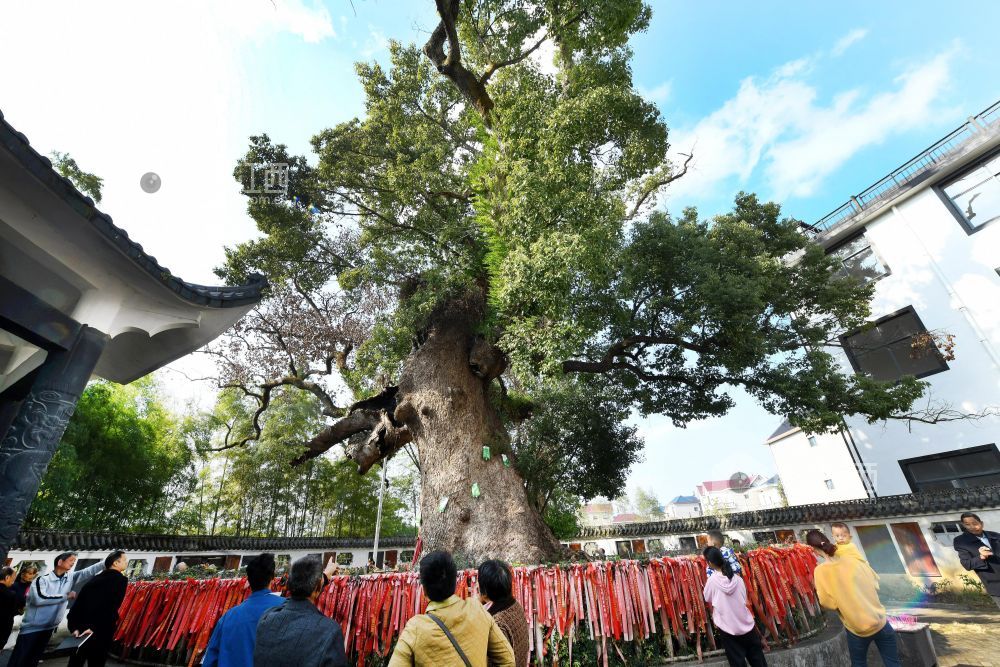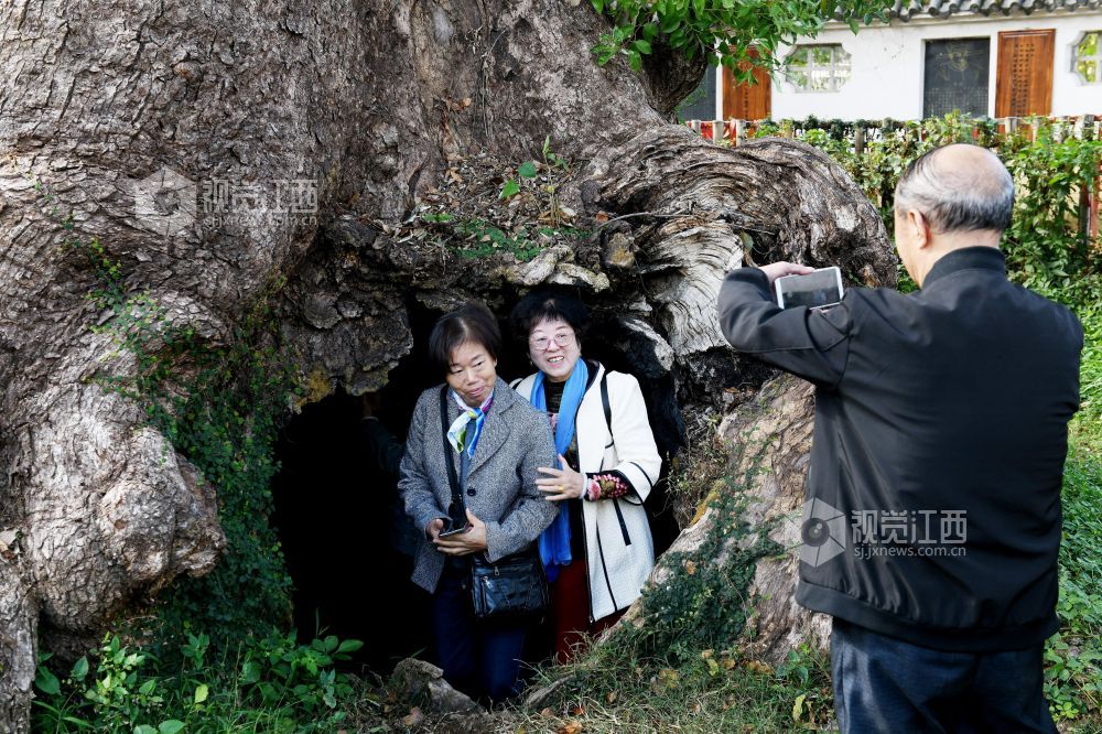 2022年11月7日,拍摄于江西省德兴市海口镇海口村这棵1800多岁“高龄”的古樟树,吸引了大批游客前来观看。