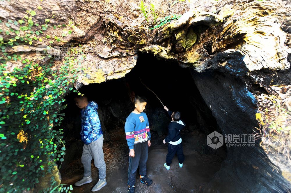据了解,江西省德兴市海口镇海口村这棵1800多岁“高龄”的巨型古樟树,树围长达23米、树高20米,树冠35米,整棵树需要16个成年人伸开双手才能合围,树蔸内有一个可容纳几十人的树洞,不管是天晴下雨,树洞内始终保持干燥,而且冬暖夏凉,犹如一个天然的避风港,供村里千千万万的子孙后代们遮风挡雨。历史上这棵千年古树曾遭受过多次雷击和火灾,但在村民们的精心抢救和呵护下,主干依然枝繁叶茂,并吸引了各方游客前来观赏。