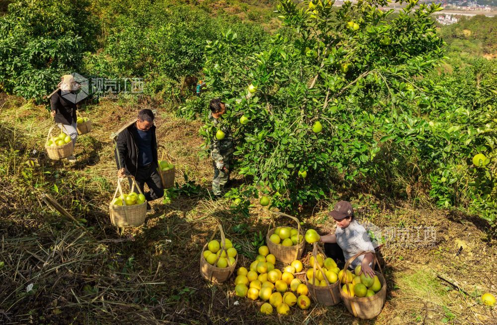 初冬时节,江西省永新县禾川镇樟石村蜜柚种植基地的蜜柚进入收获季,当地村民加紧采摘、分拣、搬运柚子供应市场。