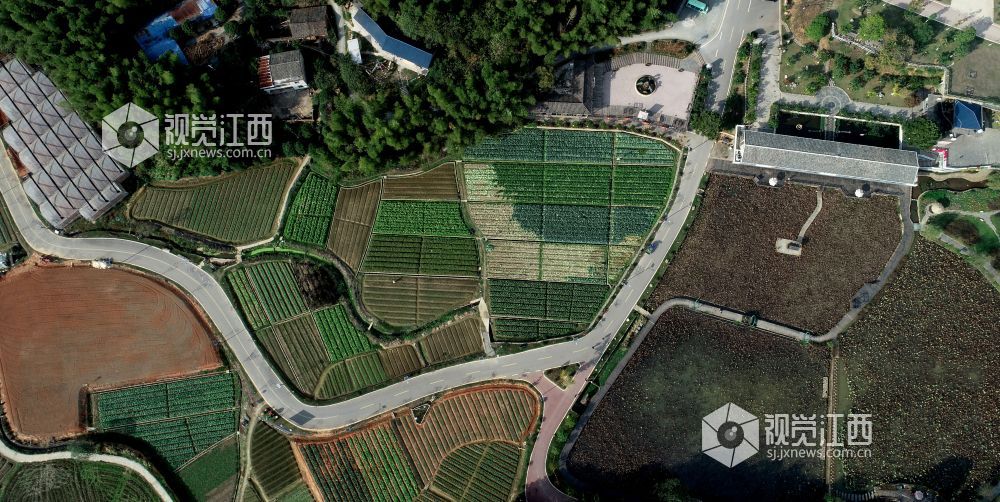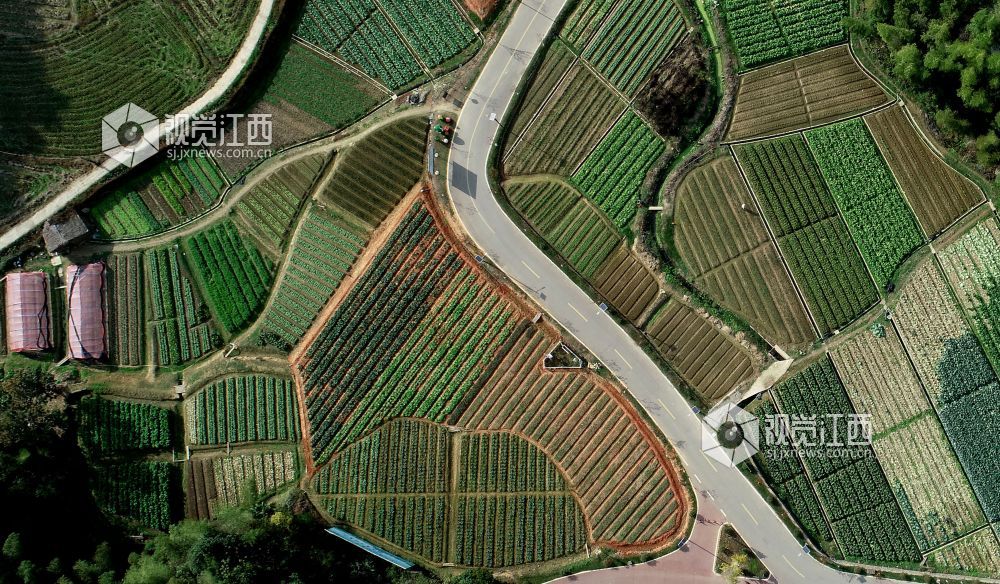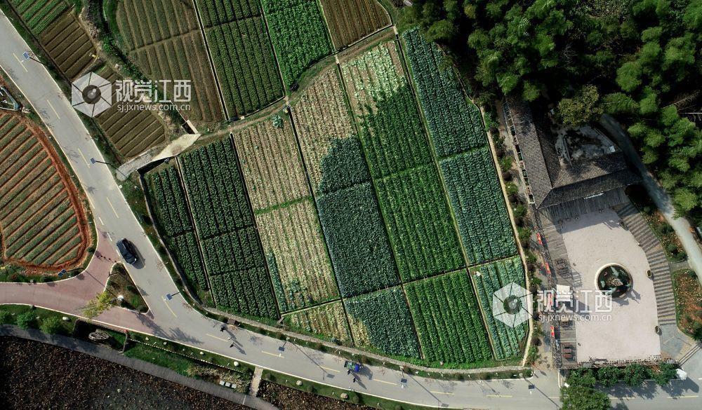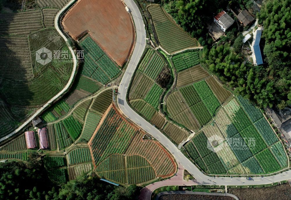 时下正值农民冬耕冬种季节,在江西省德兴市香屯街道楼上楼田园综合体,一排排当地农民耕种的油菜和蔬菜,通过无人机俯拍后,构建出一幅幅美丽的田园图。