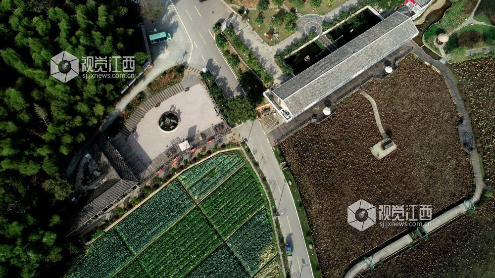2022年11月26日,航拍江西省德兴市香屯街道楼上楼田园综合体美景如画。