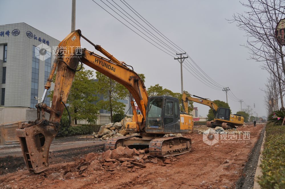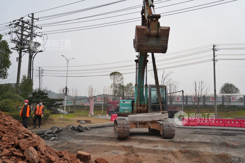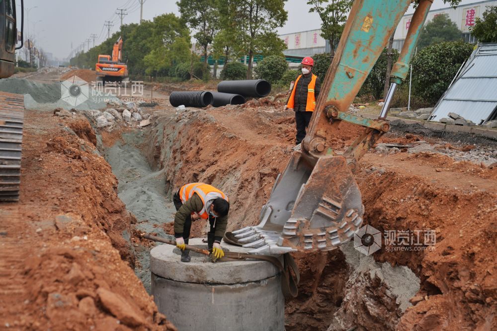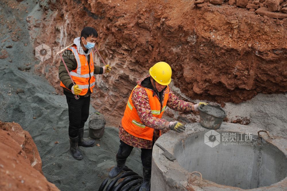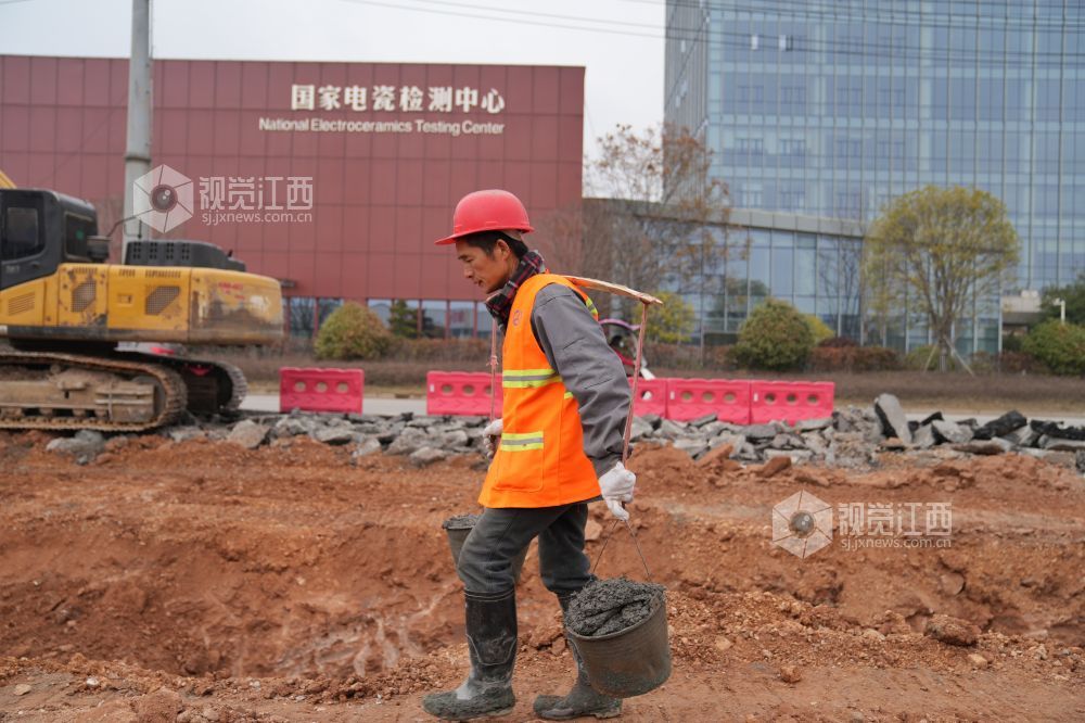 2023年1月1日,当日是新年元旦,在江西省萍乡市芦溪县工业园电瓷大道改造工程现场,工人正在工地施工劳作,抢抓工程进度,确保工程稳步推进。