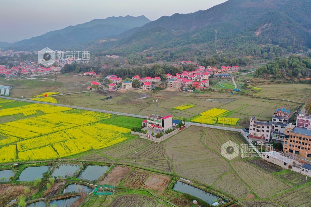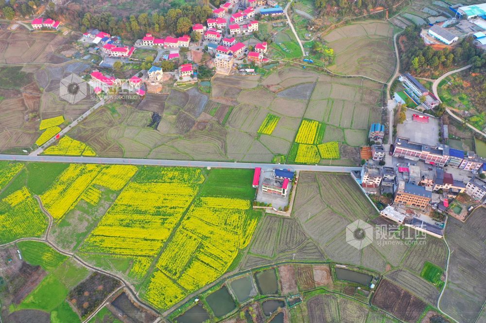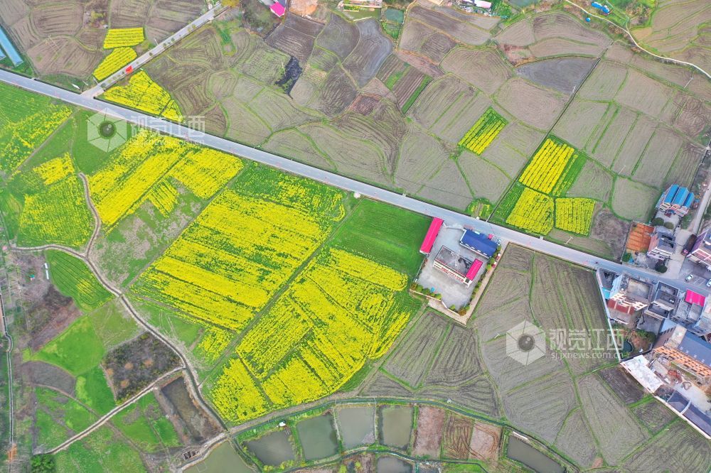 2023年3月13日,江西省萍乡市芦溪县芦溪镇山下村一带油菜花竞相绽放,春意盎然,油菜花田、村落、峰林、道路与阡陌纵横的田园相辉映,构成一幅春日美景。