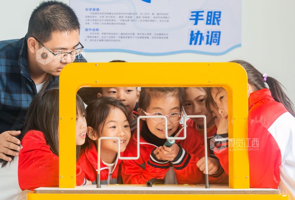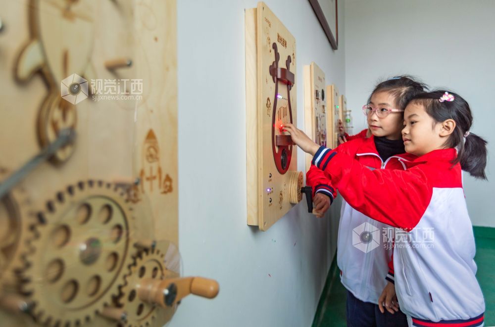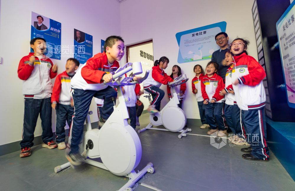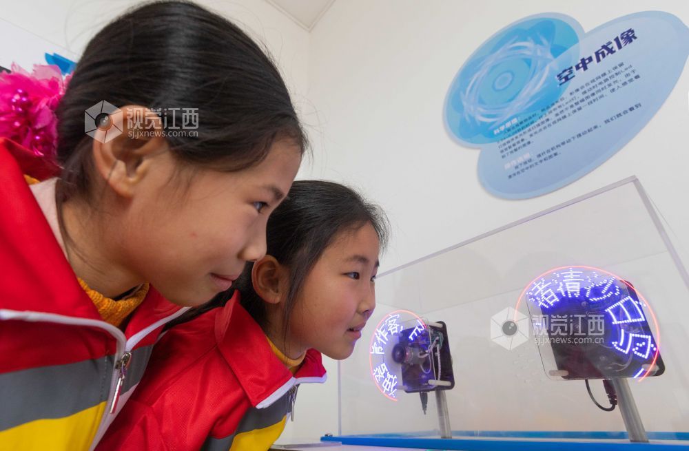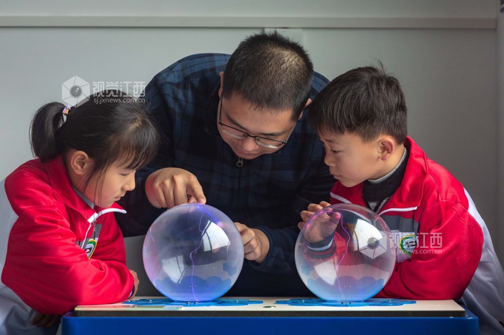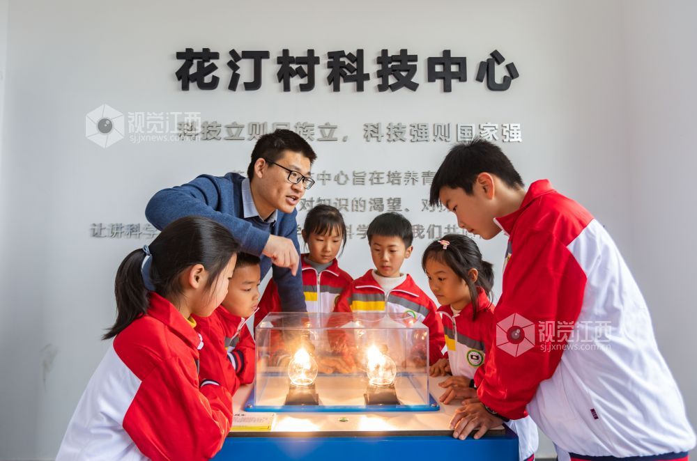 3月28日,在江西省永新县龙田乡花汀村科普中心,科普志愿者向前来参观学习的孩子们宣讲科普知识,并指导孩子们体验 “光压风车”“无皮鼓”“闪电球”“发电比赛”等科普互动项目,让孩子们感受科技的魅力。