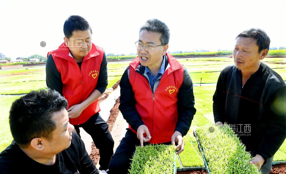 2023年4月2日,江西省鄱阳县双港镇党员干部抓住气候转暖的好天气,深入田间地头了解农民早稻秧苗育苗情况。