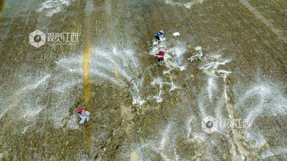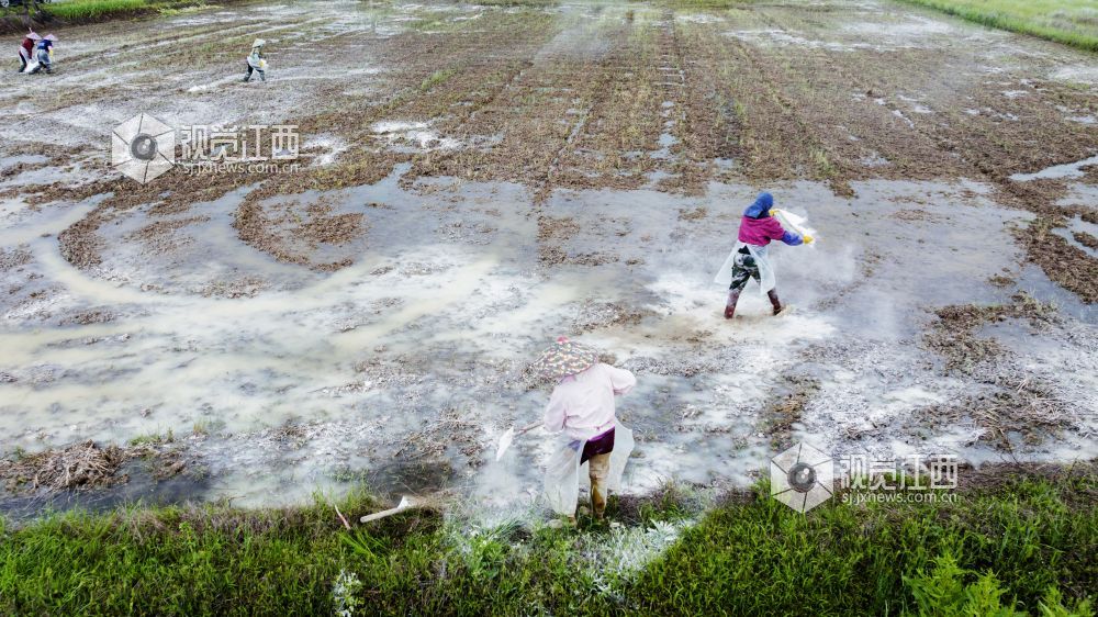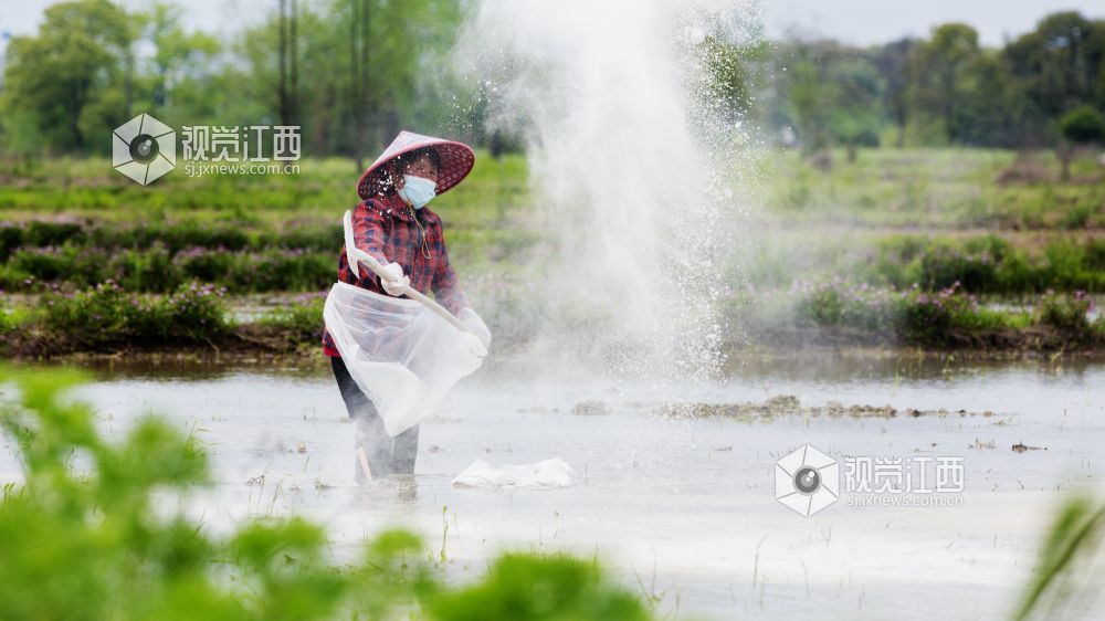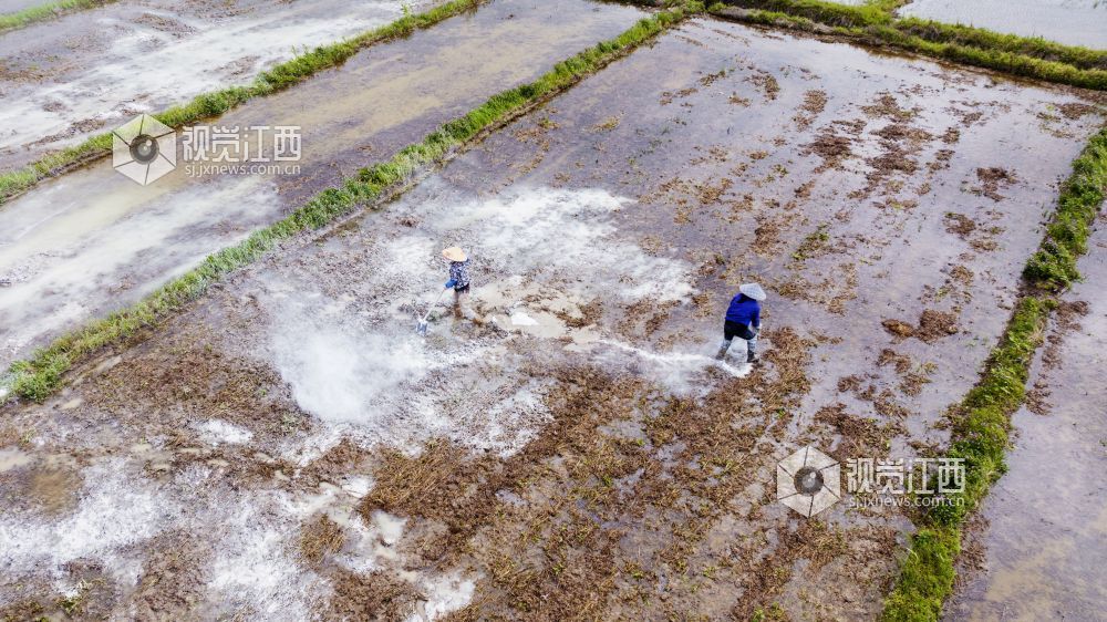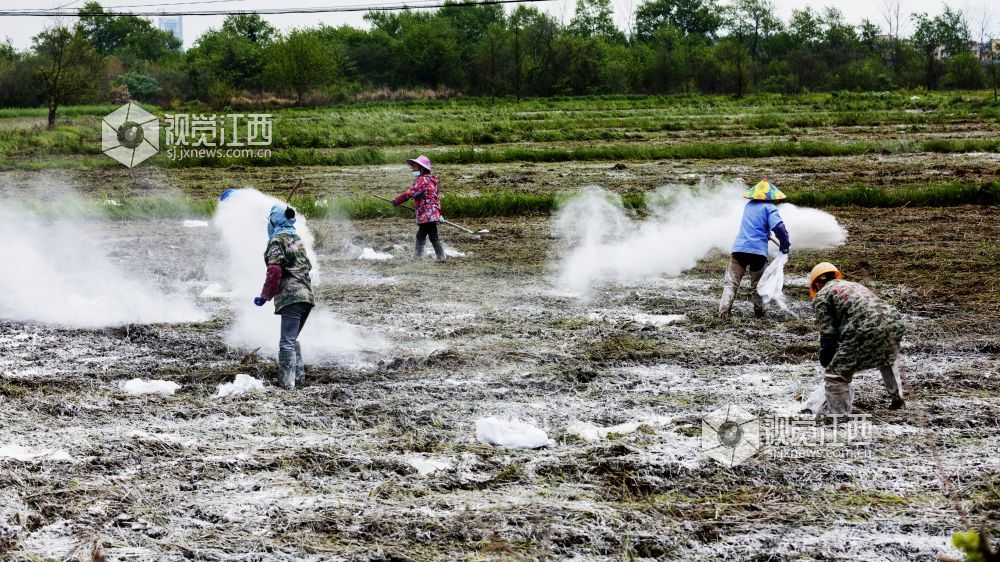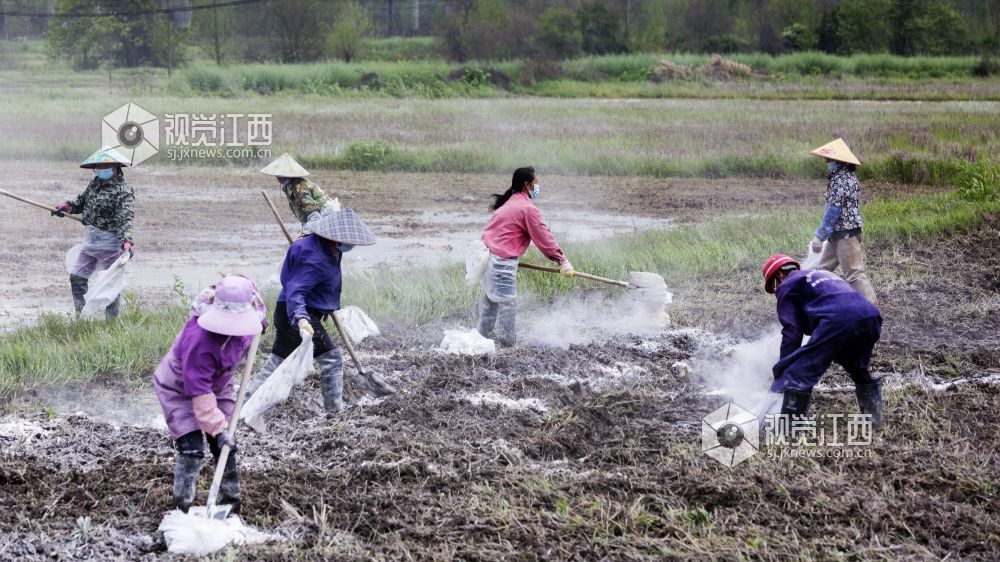 4月3日,江西省新余市仙女湖区观巢镇在落实好早稻种植面积的同时,组织农户对种植的10682亩早稻田施撒石灰消毒杀菌,确保早稻粮食生产质量。