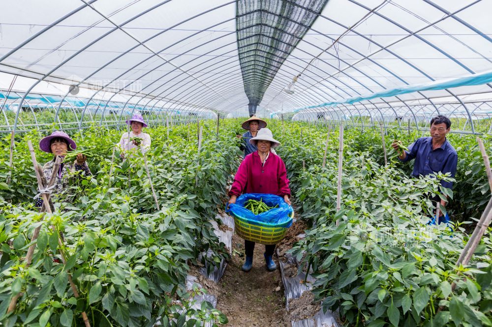 5月23日,江西省新余市仙女湖区观巢镇农户们在有机蔬菜基地采摘辣椒。据悉,当地采取“政府+致富带头人+合作社+农户”的模式,发展有机蔬菜种植,带领农民致富助力乡村振兴。洋潭村致富带头人邹小华种植的100亩有机蔬菜已经开始采摘上市,有辣椒、茄子、黄瓜、西红柿等品种,深受市民信赖和喜爱,蔬菜供不应求。