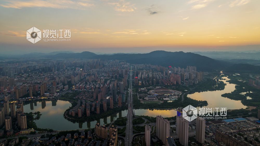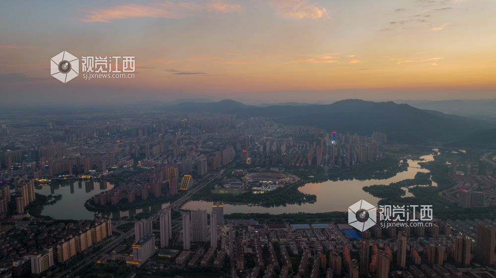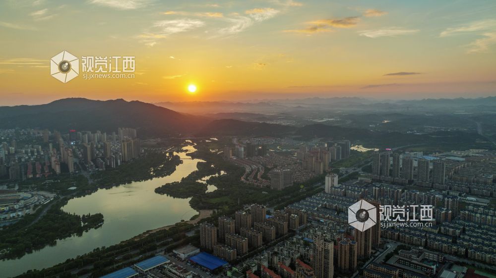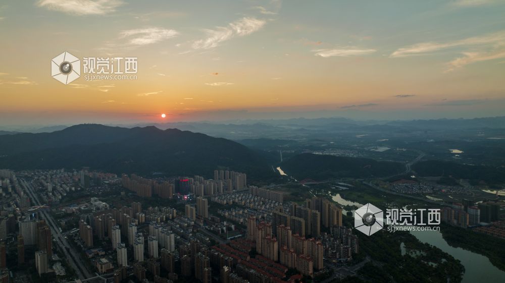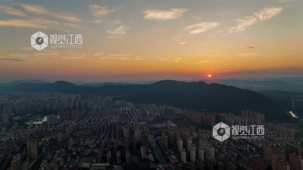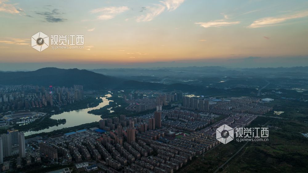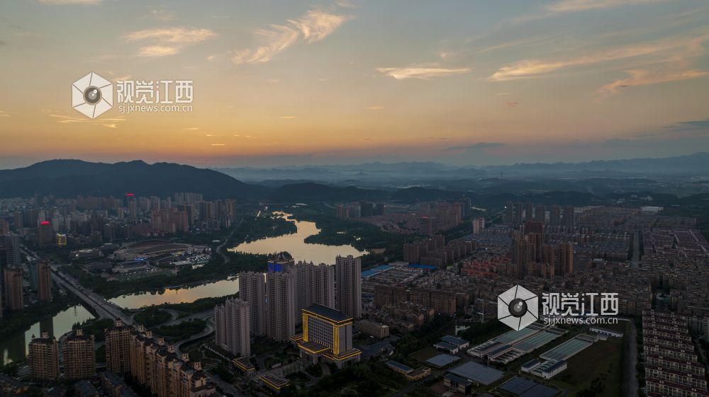 江西新余:晚霞映照城市美丽如画