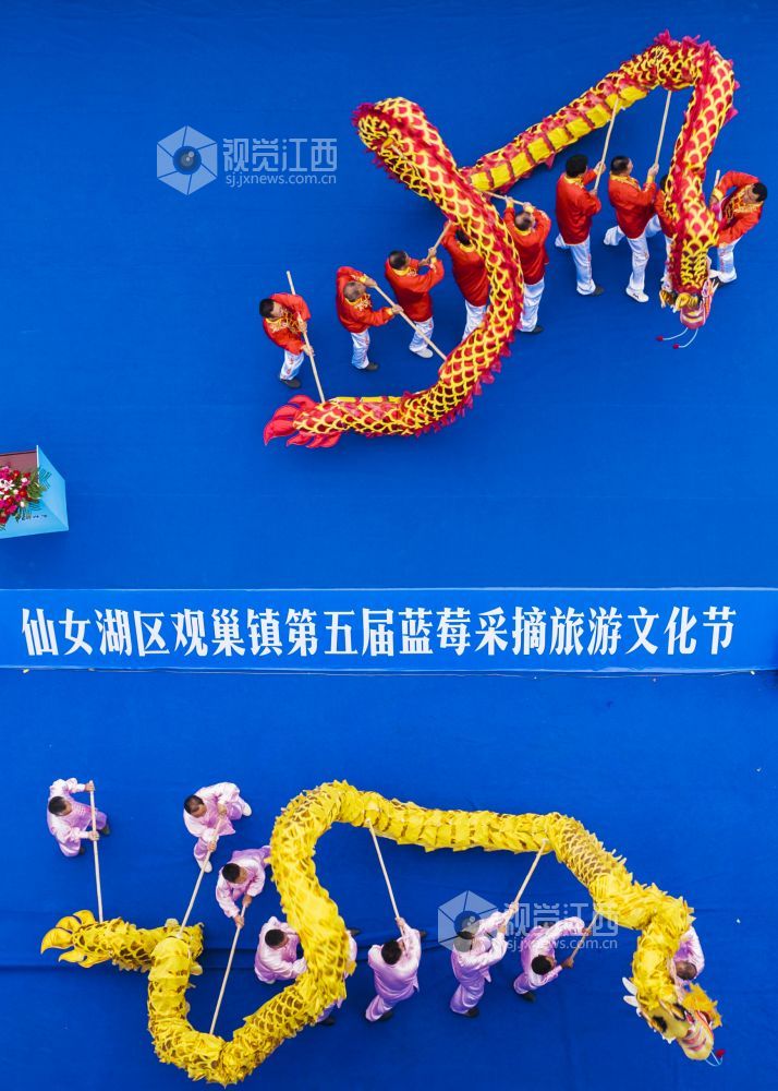 6月3日,江西省新余市仙女湖区观巢镇在科兴蓝莓基地举办蓝莓采摘旅游文化节,采摘旅游文化节上,非遗传统文化节目拾样景、舞龙表演,歌舞表演等吸引了众多游客前来观看,并参与了蓝莓、蔬菜、水果采摘活动和乡村游活动。