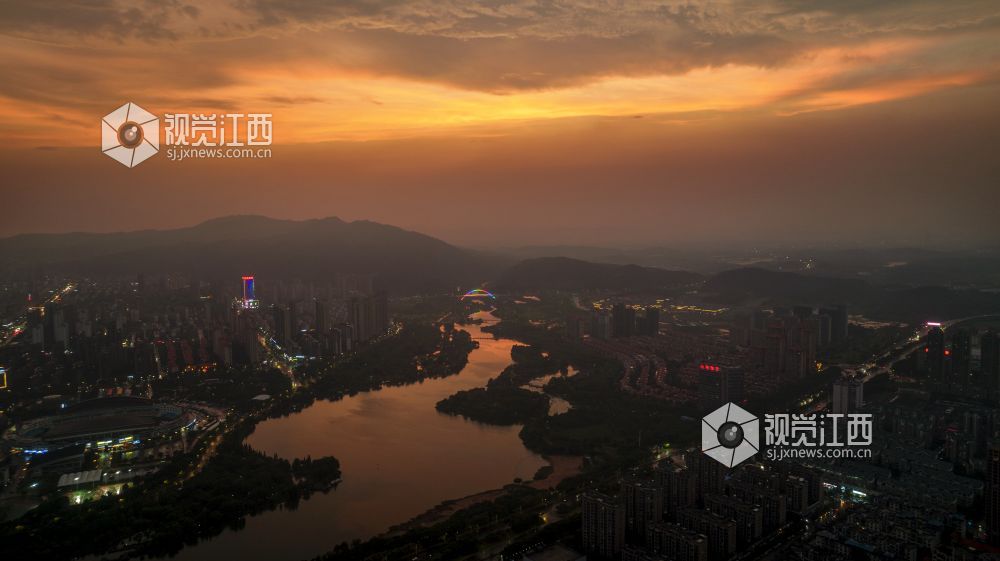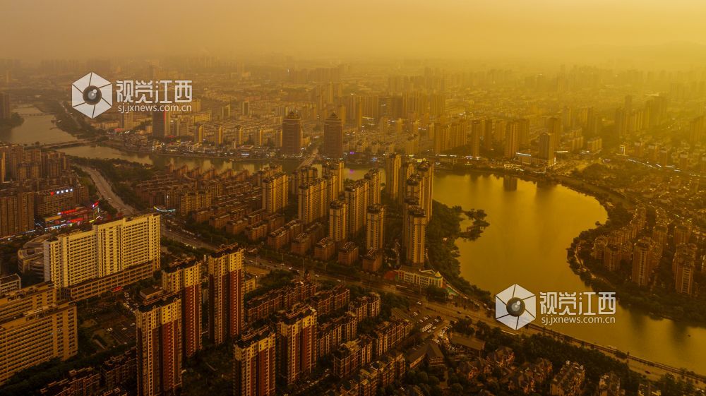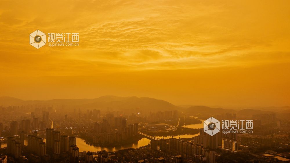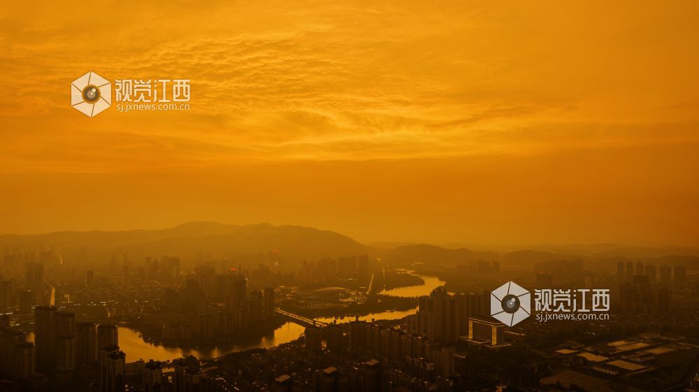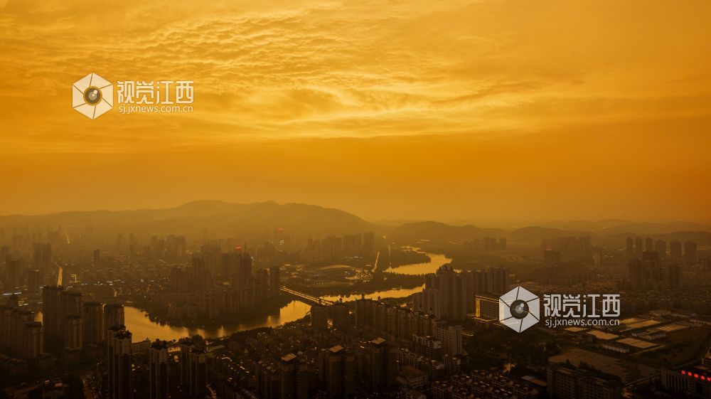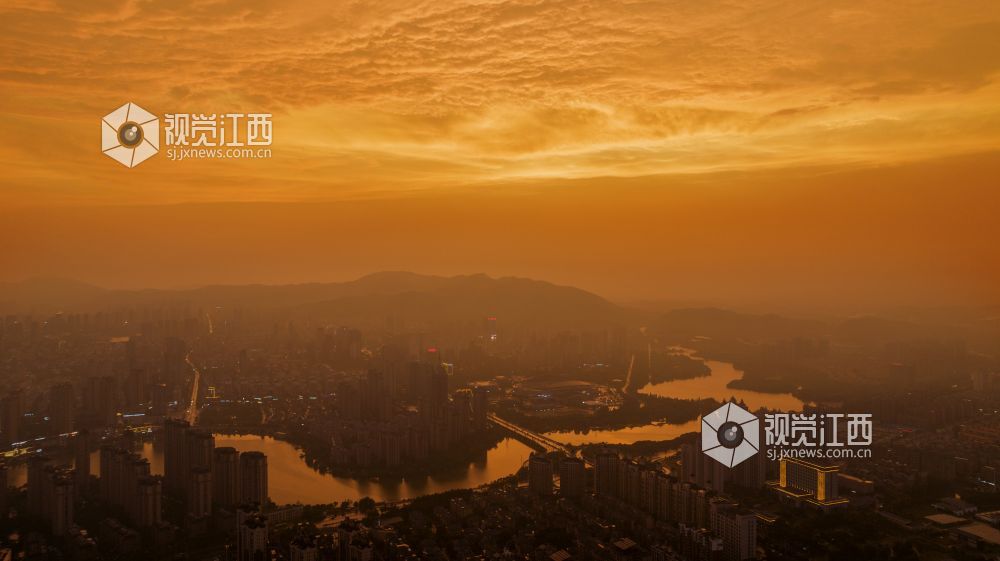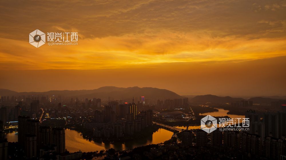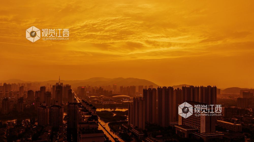 6月月4日傍晚,一场降雨过后,江西新余城区日落时分出现绚丽的晚霞。