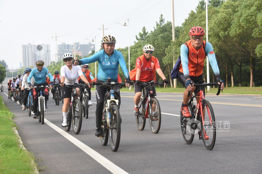2023年7月2日清晨,江西省鄱阳县自行车运动协会会员以绿色环保骑行的方式开展“永远跟党走,迈向新辉煌”“当夏”骑行 倡导环保。庆祝建党102周年系列活动。
