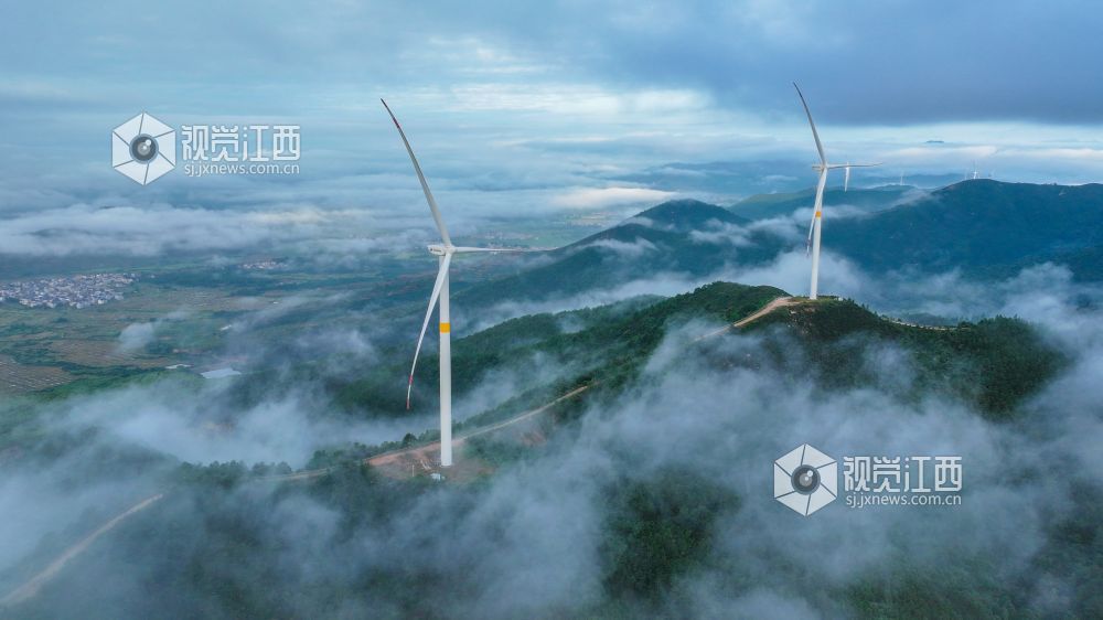 2023年9月16日在江西省吉安市峡江县罗田镇风电场拍摄。