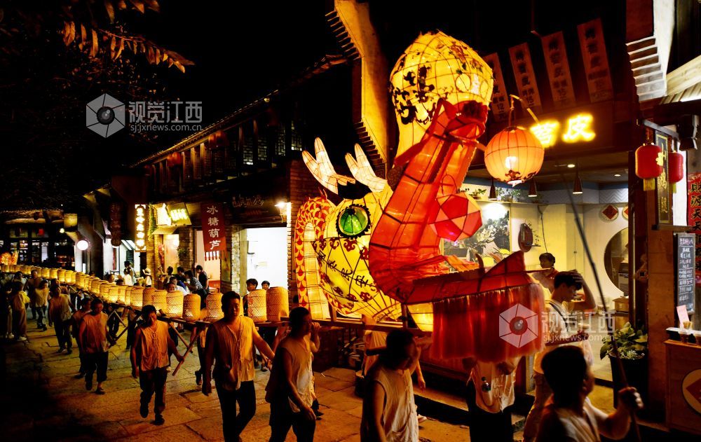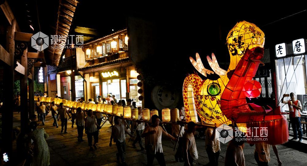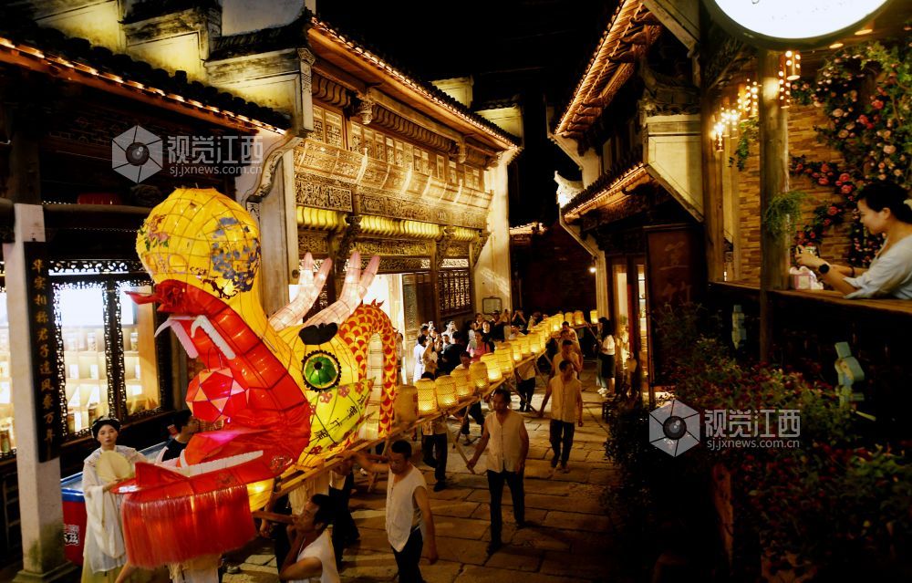 随着国庆、中秋双节的临近,江西省婺源县江湾镇篁岭古村自发组织村民舞动自制的上百米板凳灯,走村串巷舞长龙,喜迎我国传统节日中秋佳节和中华人民共和国成立74周年的到来。