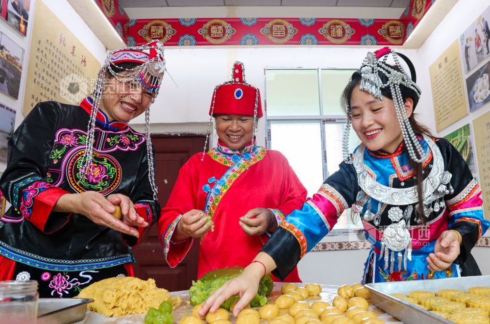 江西吉水:畲族村民制作月饼喜迎“双节”