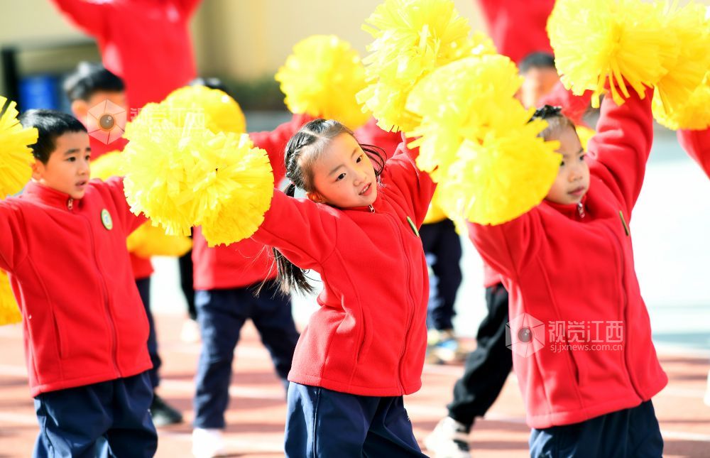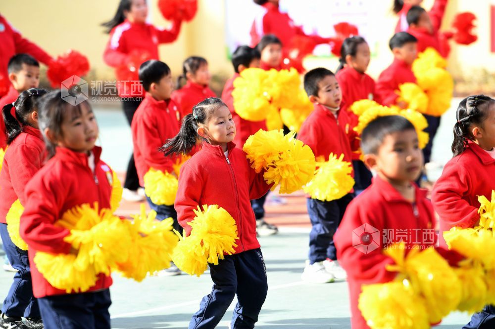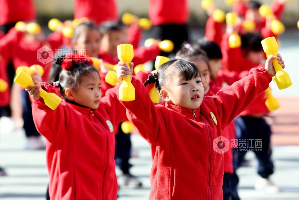 2023年12月26日,江西省德兴市铜矿幼儿园小朋友正在进行幼儿花样健身操表演。
