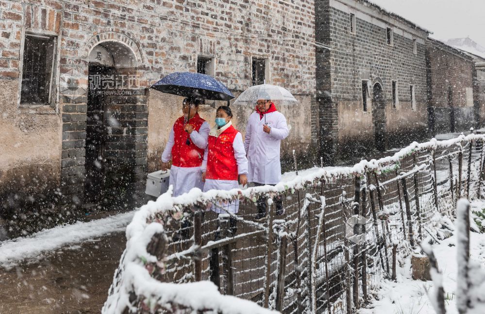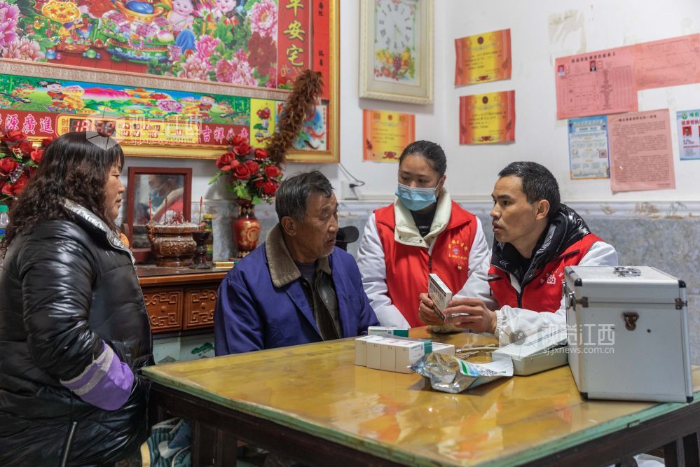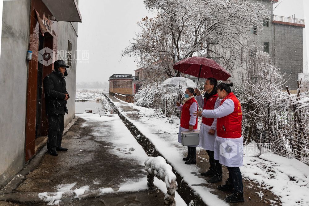 1月22日,江西省永新县埠前镇卫生院心系签约服务对象,家庭医生团队冒雪上门,对心脑血管疾病等患者的身体状况、近期用药及活动方式等进行了详细评估,并送上常用药品,叮嘱其注意防范,减少不必要的外出活动。
