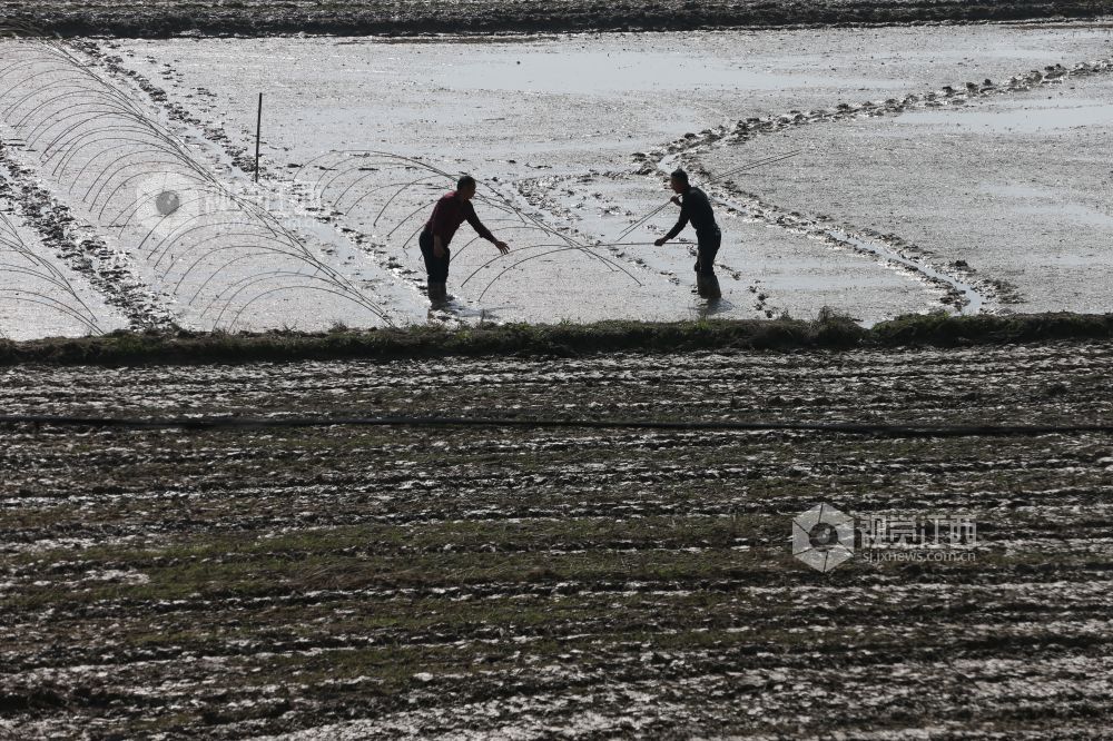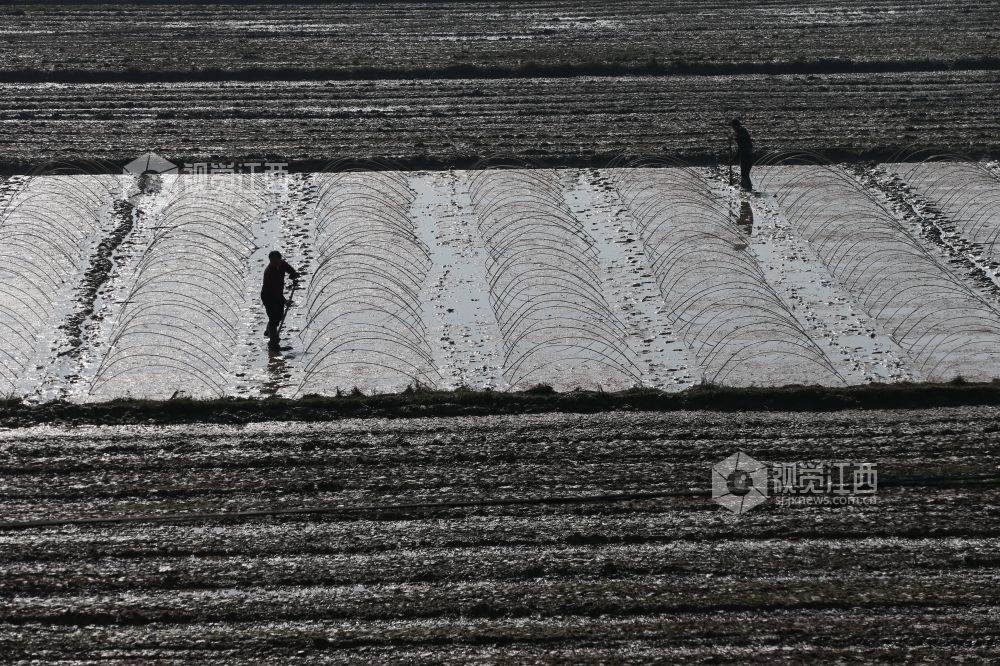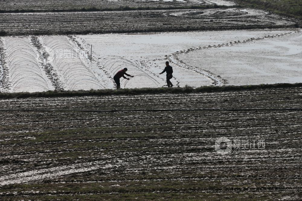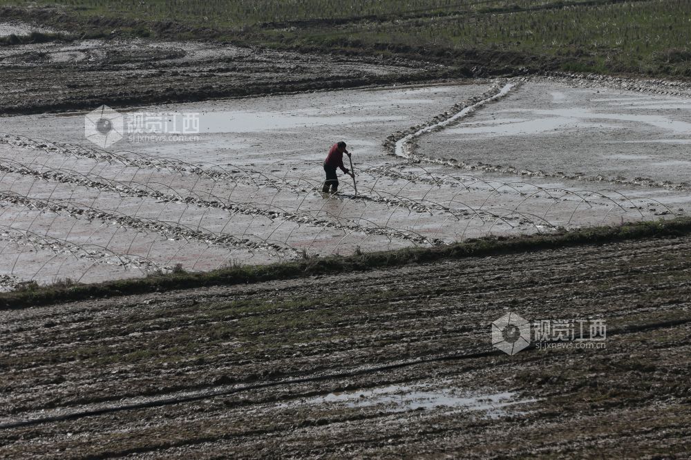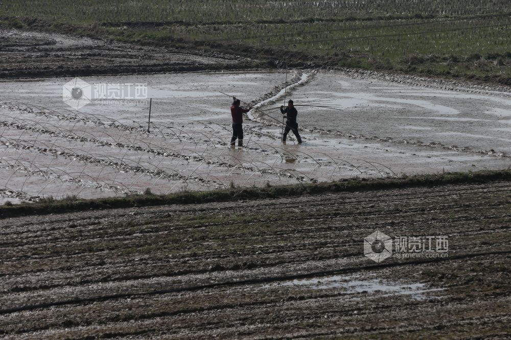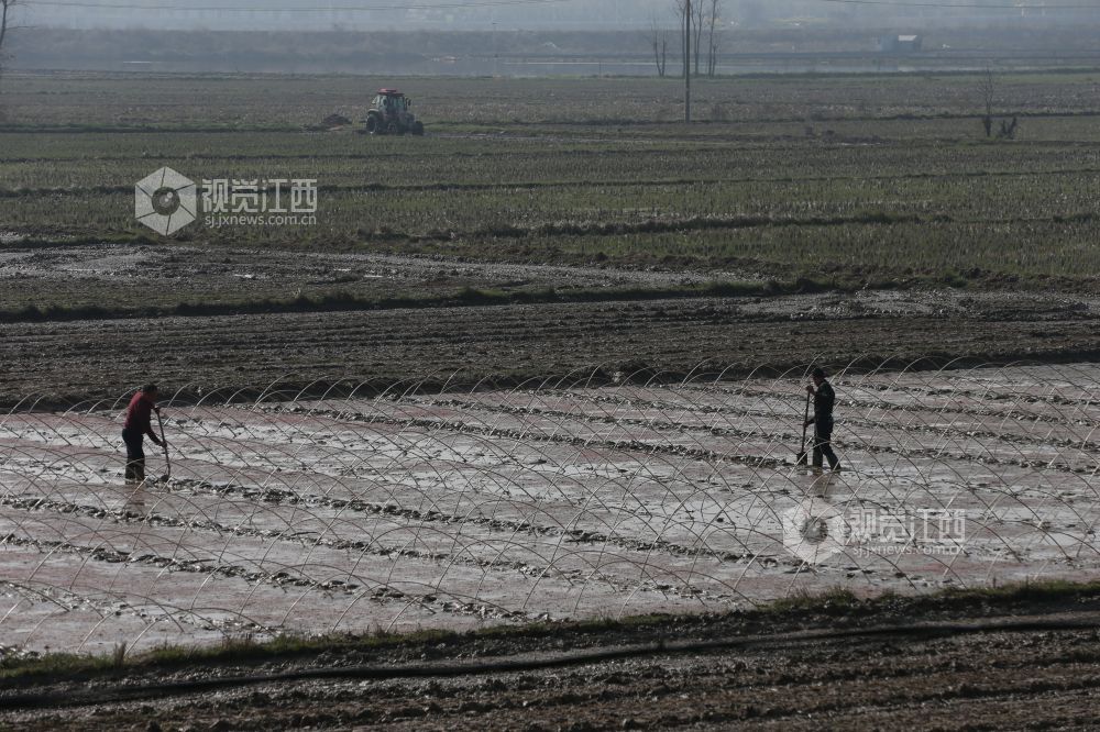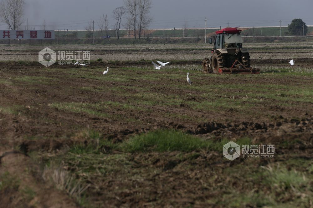 2024年3月20日,春分时节,位于江西省鄱阳湖东岸的江西省鄱阳县宝岛稻虾蟹基地ー派繁忙。基地里打田机机声隆隆,农民技术员正在赶抓时节,不误农时整田育秧。