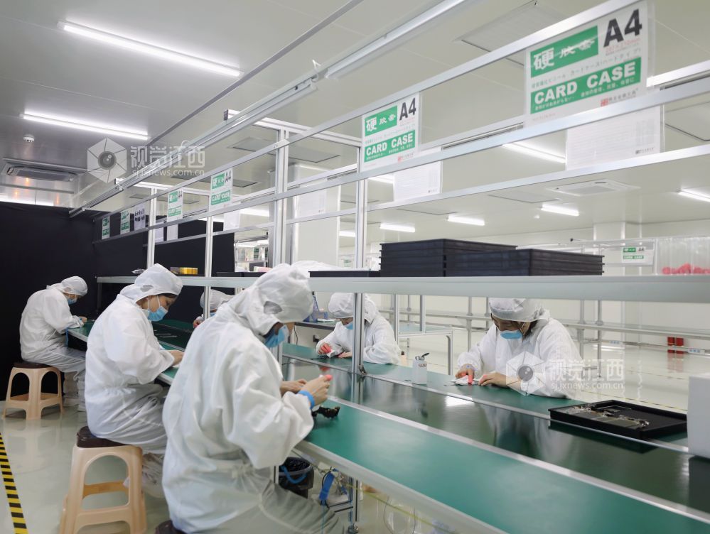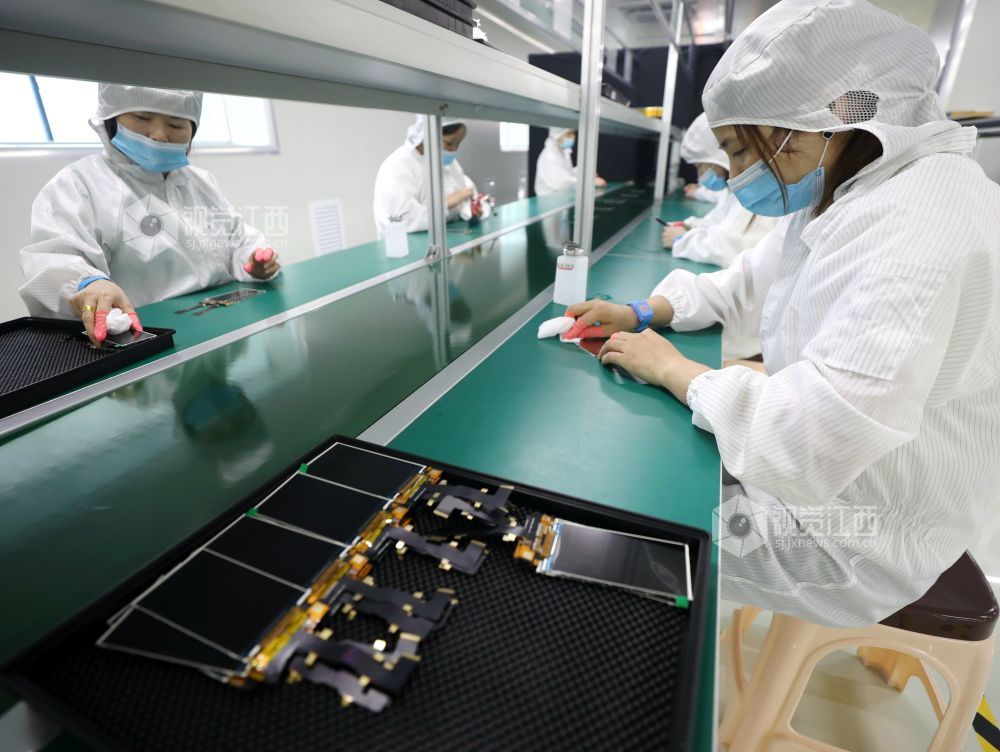 2024年6月2日,江西省分宜县工业园区肆海电子科技有限公司生产车间内,工人正在赶制手机盖板订单。该公司是一家从事液晶模组产品研发、生产、销售于一体的高科技企业,年产液晶模组高达500万片。近年来,当地通过科技创新、政策引导和金融服务等措施开辟发展新领域,推动园区企业朝数字化、智能化、绿色化方向发展。