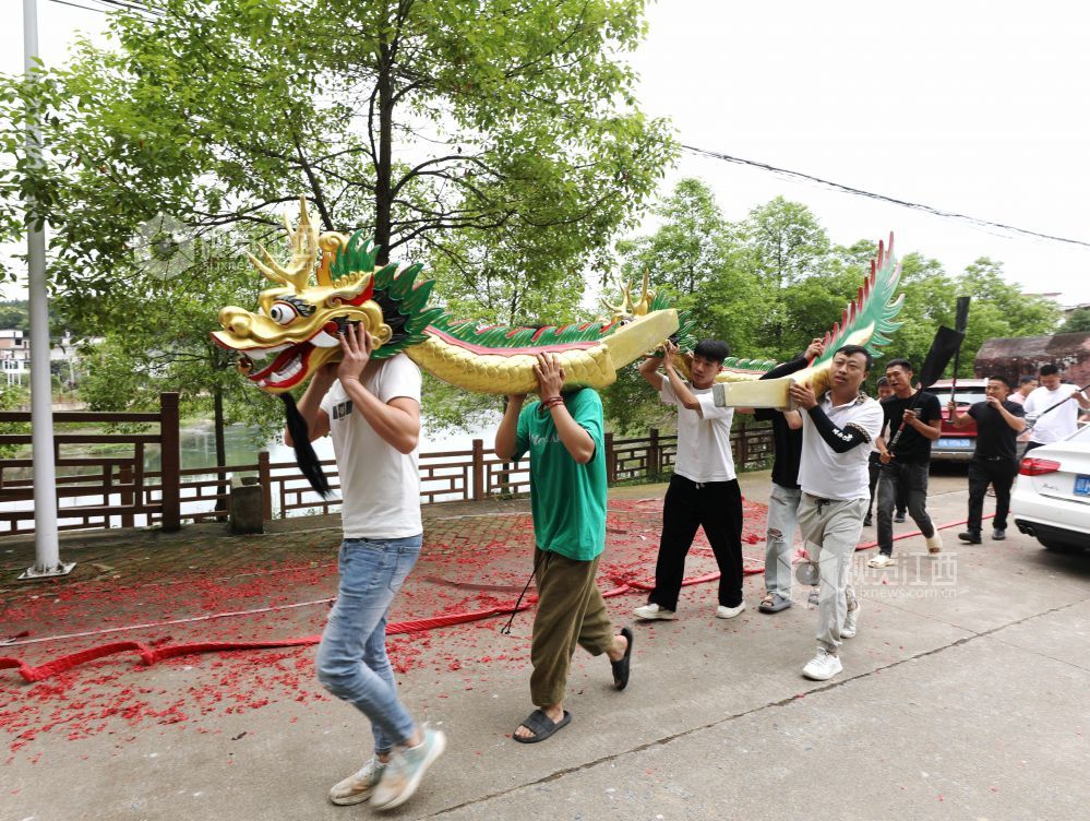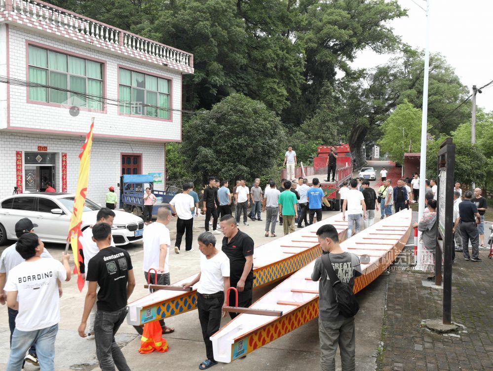 2024年6月3日,江西省分宜县洋江镇纽村村按照传统习俗,两条新龙舟举行骏水仪式。
