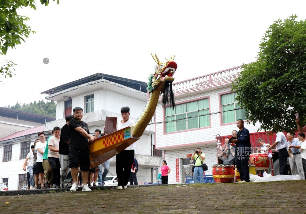 当天上午,新龙舟骏水现场一片欢腾,喜气洋洋,锣鼓喧天,祈福声、欢笑声一片。随着阵阵锣鼓声响起,村民们铆足劲抬着龙舟一步步将它推入水中。整个骏水仪式遵循传统习俗进行,每一个环节饱含着大家祈求平安、顺利、好运的愿望。