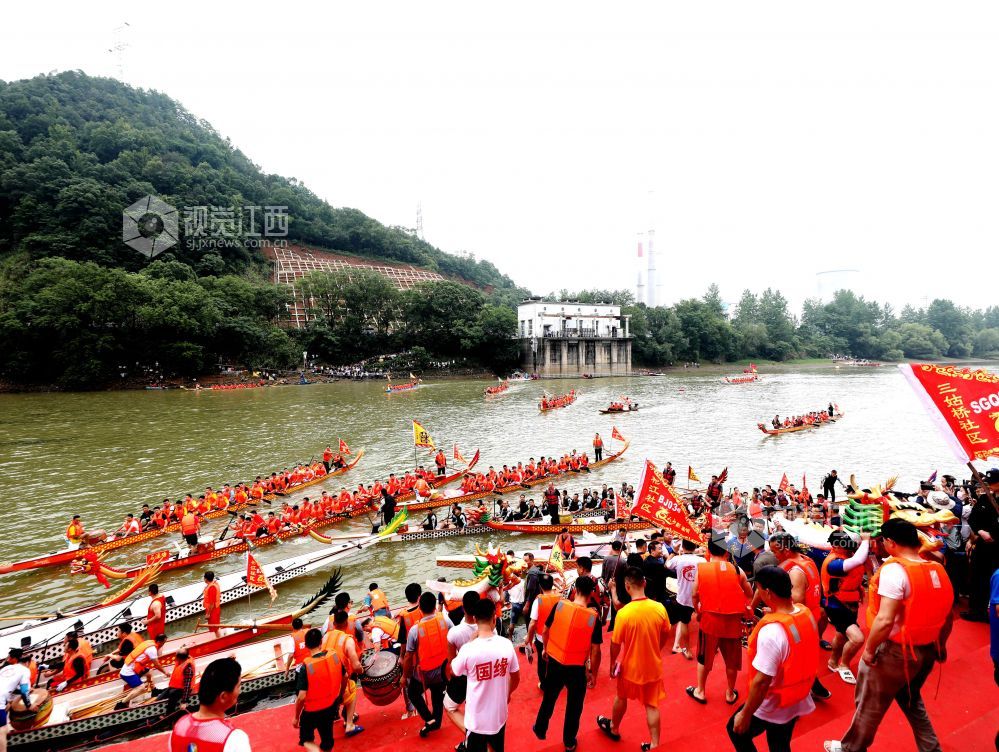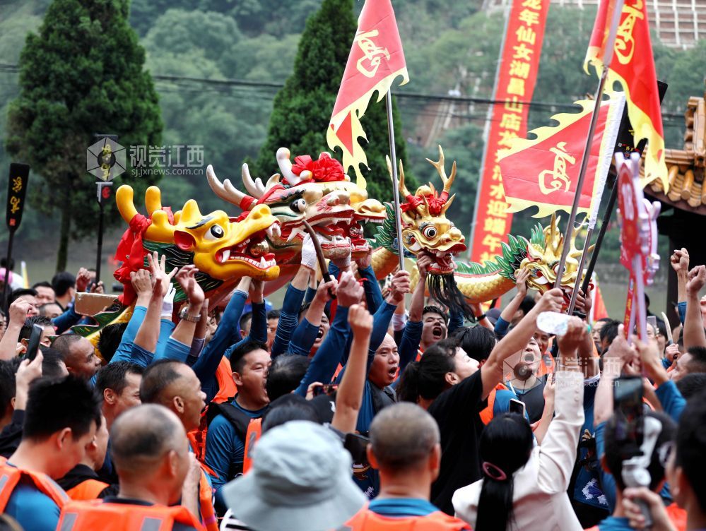 2024年6月6日,农历五月初一。当日,来自江西省分宜县分宜镇、洋江镇的30余条龙舟沿着袁河水系汇聚一堂,在袁河水域旁的昌山庙参加传承千年的龙舟“活水”仪式。