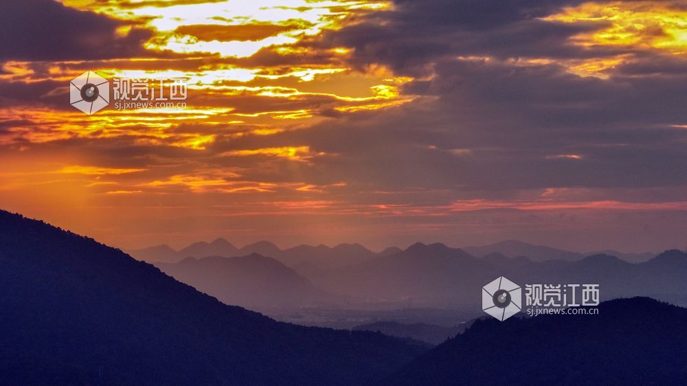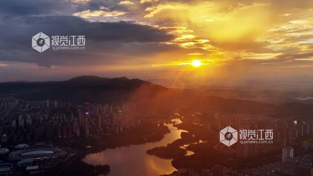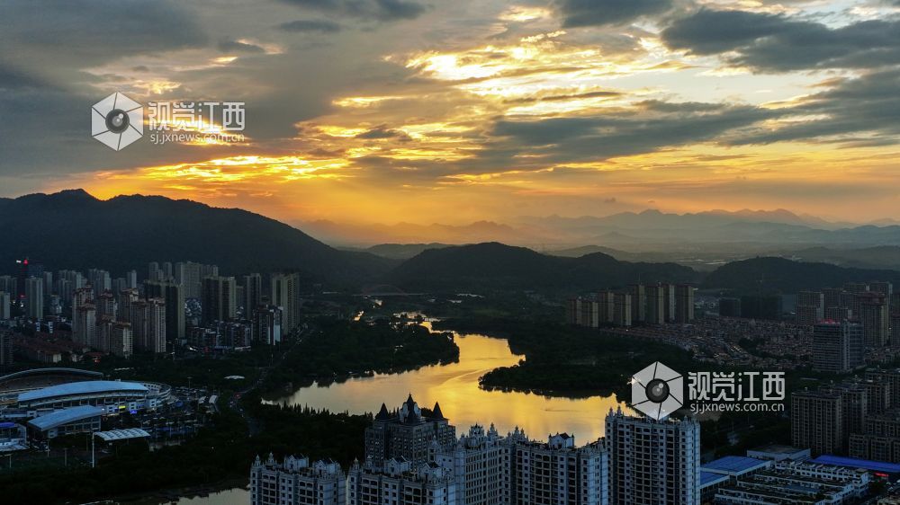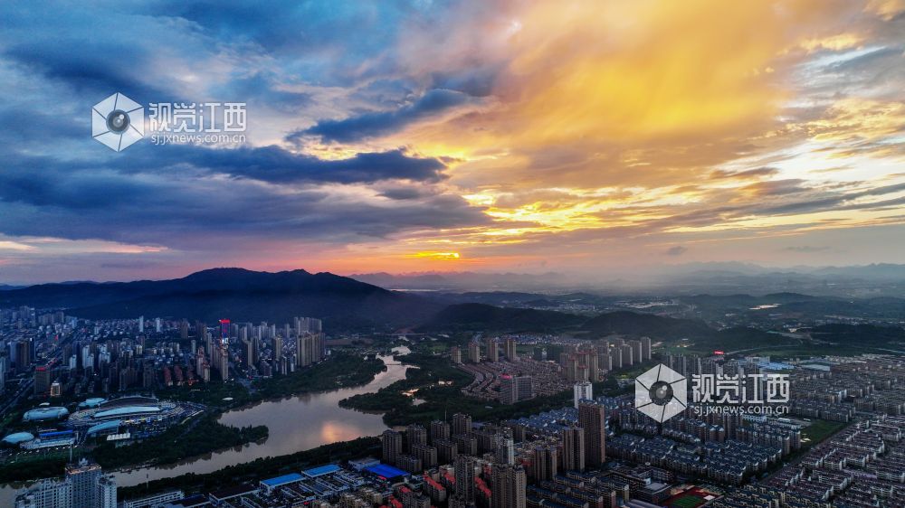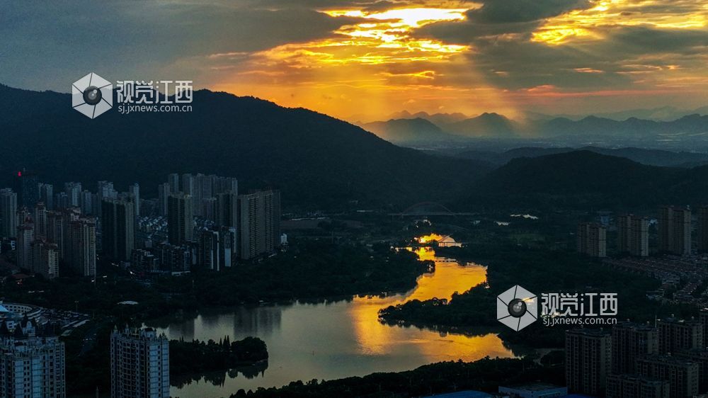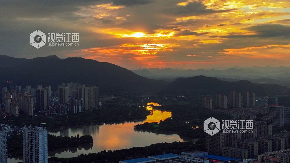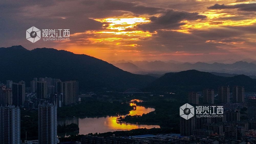江西新余:晚霞中的孔目江国家湿地公园美如画卷