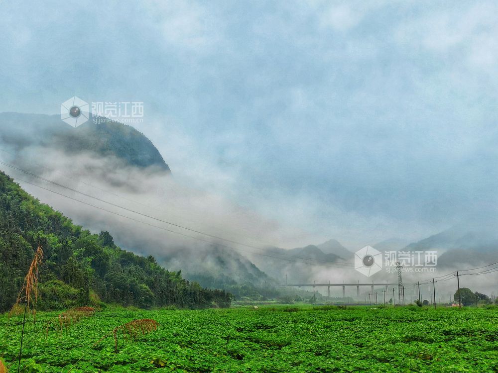2024年6月12日,江西省分宜县雨后云雾缭绕,与乡村田园、村落、河流、交通干线相互交织,构成如诗如画的美景,宛如仙境降临凡间,让人陶醉在这自然与人文交织的美妙画卷之中。