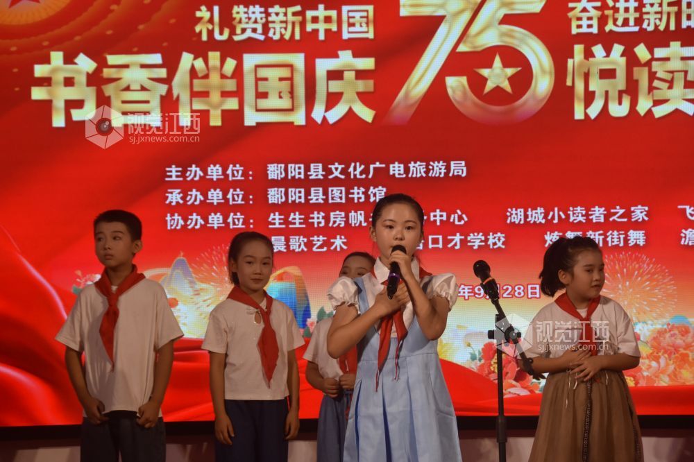 2024年9月28日,江西鄱阳县图书馆总馆举办了“书香伴国庆 悦读阅美好”文化赶集活动,庆祝新中国成立75周年。活动吸引了众多小读者参与,他们通过朗诵、演唱等形式表达爱国情怀。此次活动不仅激发了孩子们的阅读兴趣,还营造了浓厚的文化氛围,为鄱阳县文化事业发展增添了新活力。