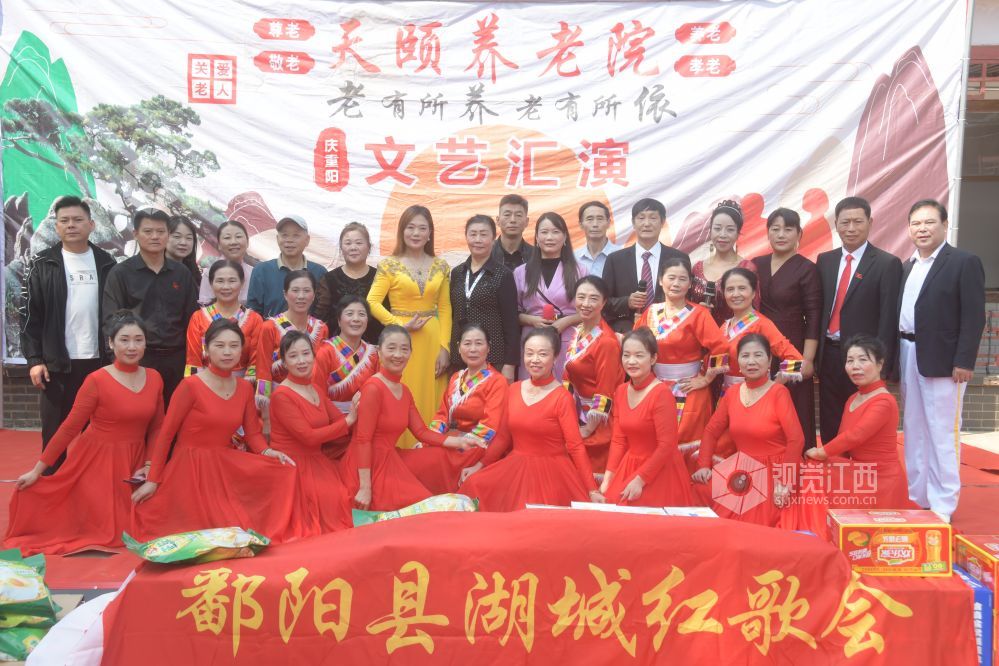 2024年10月10日,江西省鄱阳县天颐敬老院里欢声笑语,歌声飞扬,县文艺志愿者及爱心人士走进敬老院开展“敬老、爱老、共度重阳”活动。与老人们共话幸福生活,送去文艺节目和慰问品等,一起欢度重阳节。