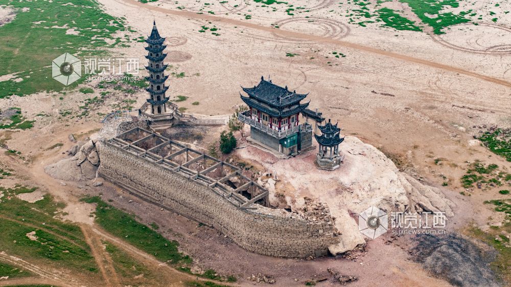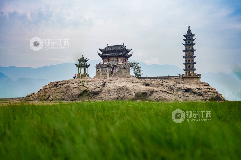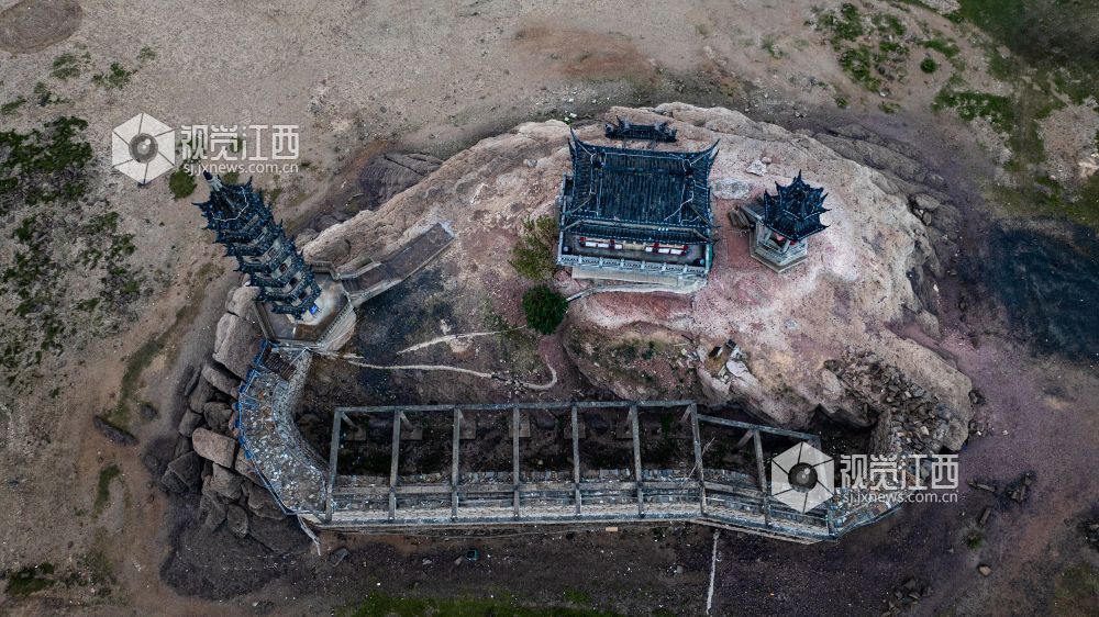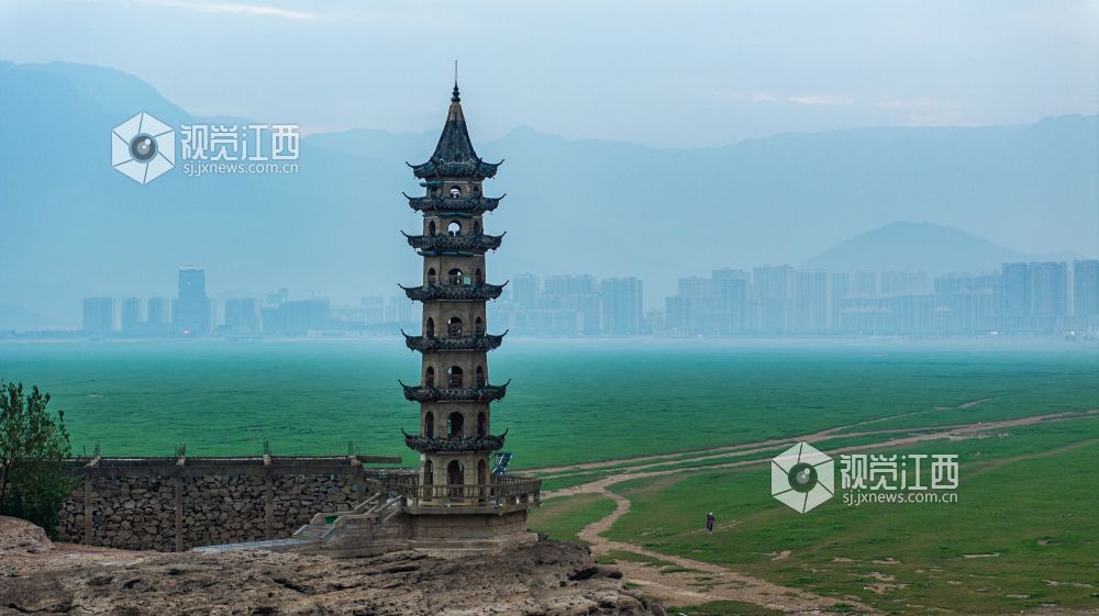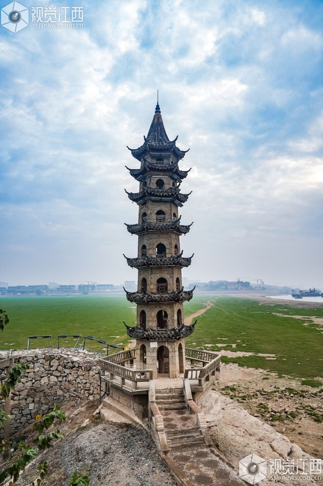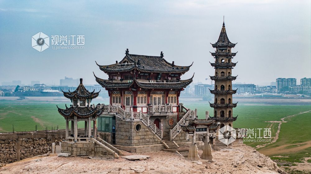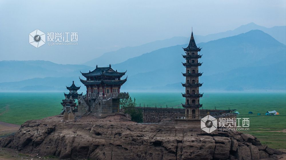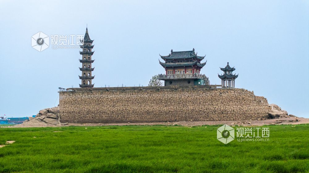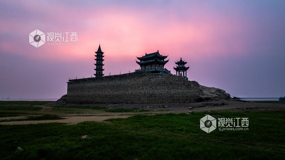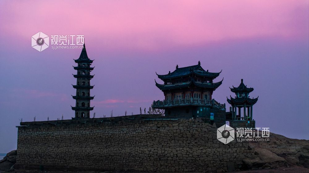 落星墩并不是想见就能见的,只有到了枯水期,鄱阳湖水位下降,这个水上古迹才会露出真容。岛上仅有一座牌坊、一间禅院、一个观景台以及一座古塔。夜幕降临时,岛上古建亮起明灯,犹如沧海明珠,吸引了许多游客拍照“打卡”留念。