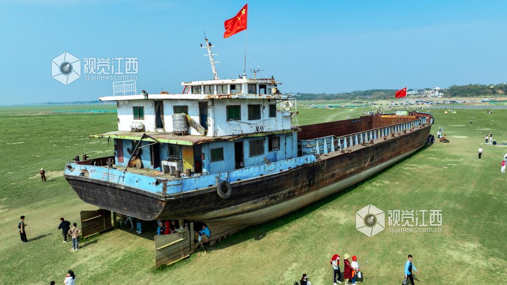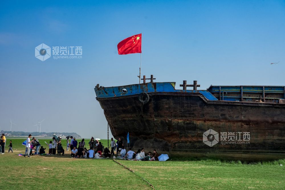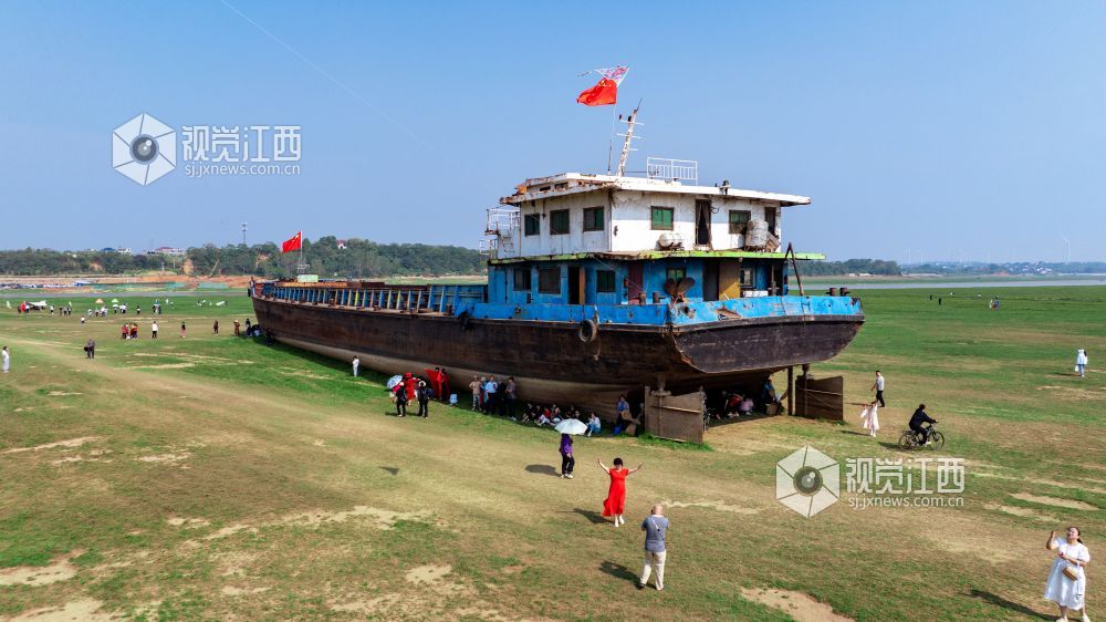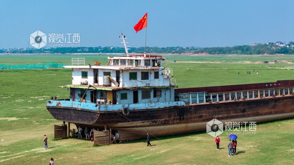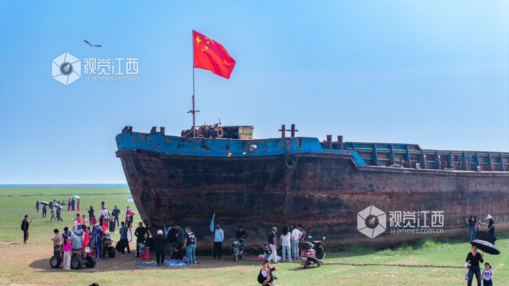 10月13日,在江西省九江市庐山市蓼南乡王爷庙旁,广袤的草海中,一艘被遗忘的采砂船,在赣江与鄱阳湖的交汇处静静搁置。这是独属于鄱阳湖的“布鲁威斯号”,这艘船被青草和湖水环绕,构成了一幅绝美的画卷,吸引着许多游人与摄影爱好者前来打卡拍照。