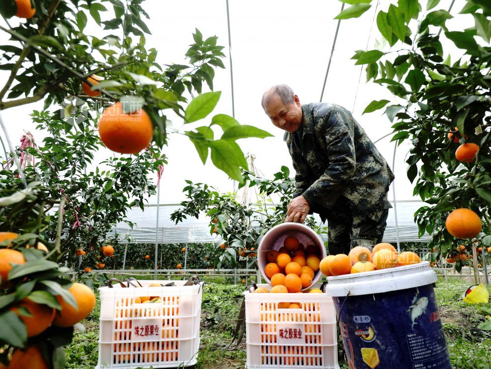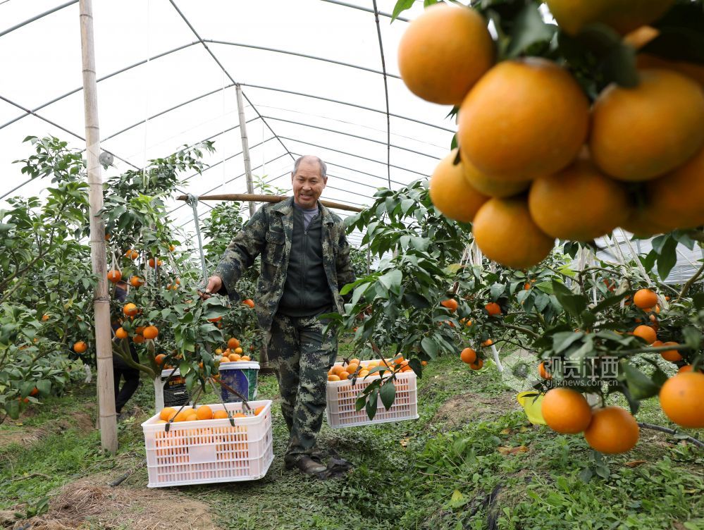 2024年11月23日,在江西省分宜县钤山镇味之原果业160亩红美人果冻橙种植基地,果农忙着采摘果冻橙供应市场。走进基地,只见黄澄澄、沉甸甸的果冻橙挂满枝头,十分诱人。微风过后,阵阵果香扑鼻而来,呈现出一派丰收的喜人景象。近年来,钤山镇依托地理位置和自然气候优势,大力发展精品水果产业,培育促进农业增效、农民增收的“一村一品”特色村。